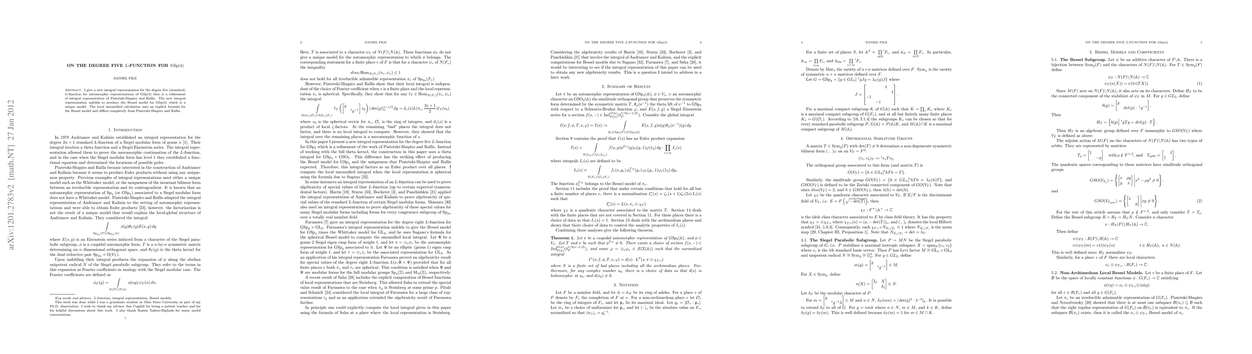 I give a new integral representation for the degree five (standard) L-function for automorphic representations of GSp(4) that is a refinement of integral representation of Piatetski-Shapiro and Rallis. The new integral representation unfolds to produce the Bessel model for GSp(4) which is unique. The local unramified calculation uses an explicit formula for the Bessel model and differs completely from Piatetski-Shapiro and Rallis.