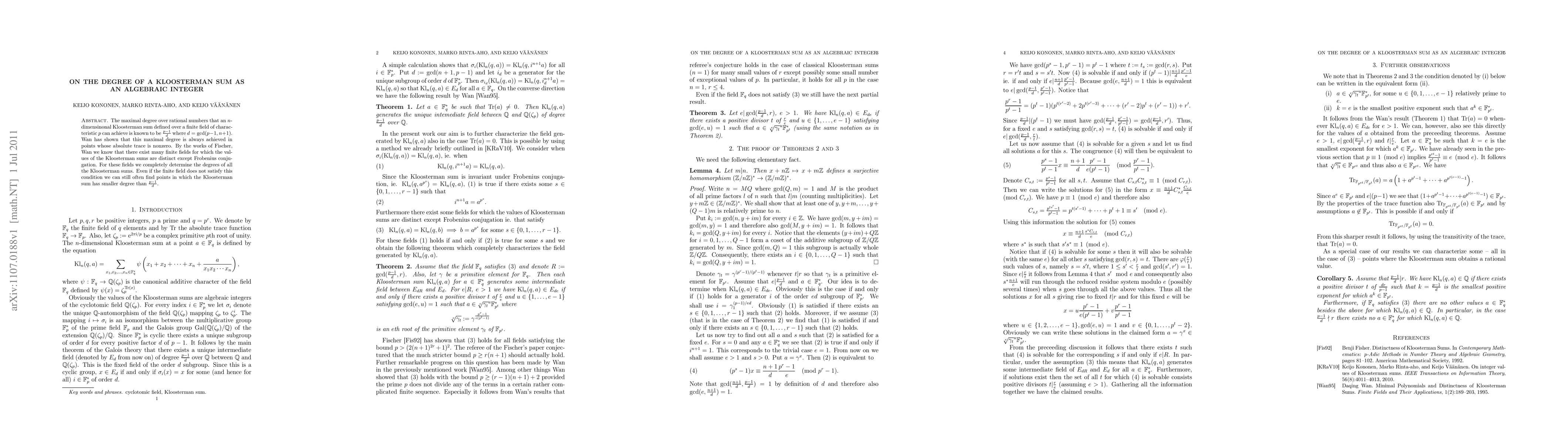 Research shows that the degree of a Kloosterman sum can achieve up to (p-1)/d over rational numbers, but often falls short in specific points with nonzero absolute trace values. The study focuses on finding such points where the degree is smaller than expected.