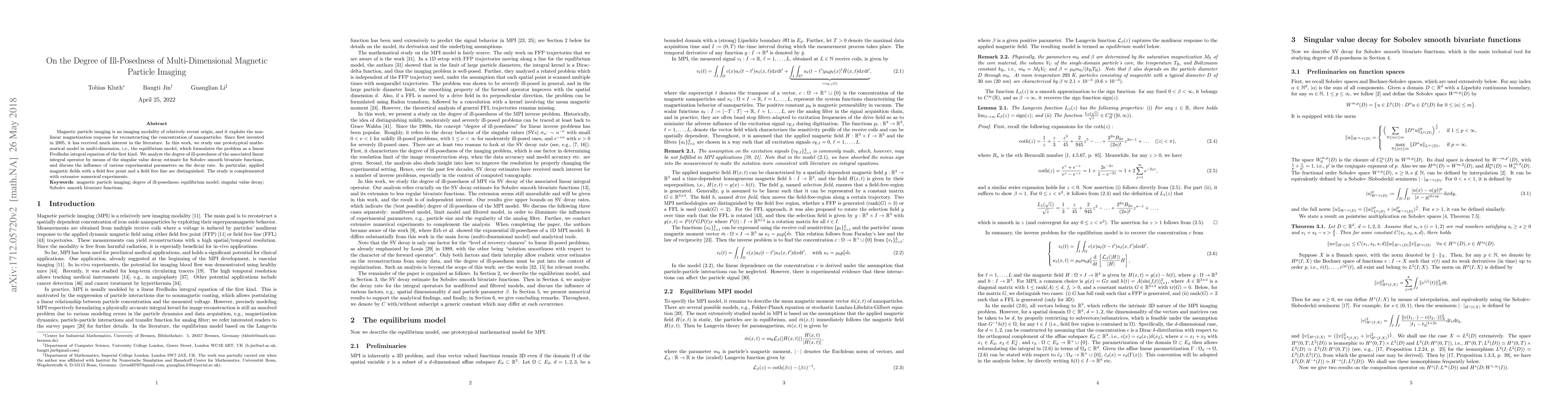 This paper investigates the degree of ill-posedness in magnetic particle imaging, a technology that uses nonlinear magnetization responses to reconstruct nanoparticle concentrations. It analyzes the problem as a linear Fredholm integral equation and discusses experimental parameters' influence.
