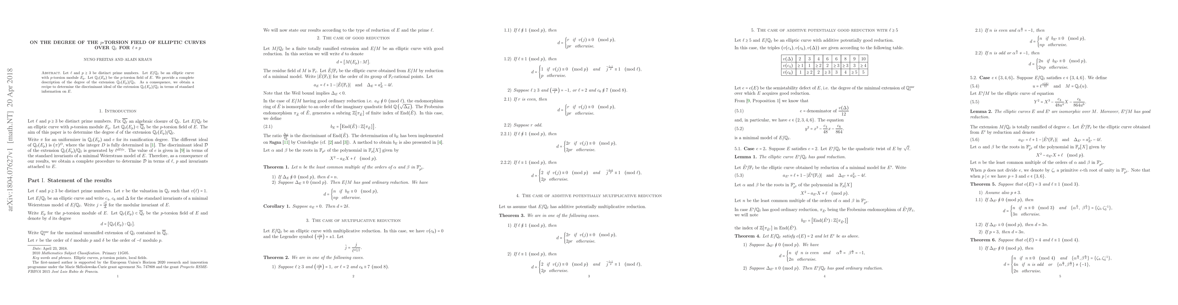This paper investigates the degree of the $p$-torsion field $\mathbb{Q}_{\ell}(E_p)$ of an elliptic curve $E/\mathbb{Q}_{\ell}$ when $\ell$ and $p$ are distinct primes. It provides a complete description of this degree and derives a method to determine the discriminant ideal of the extension in terms of $E$'s properties.