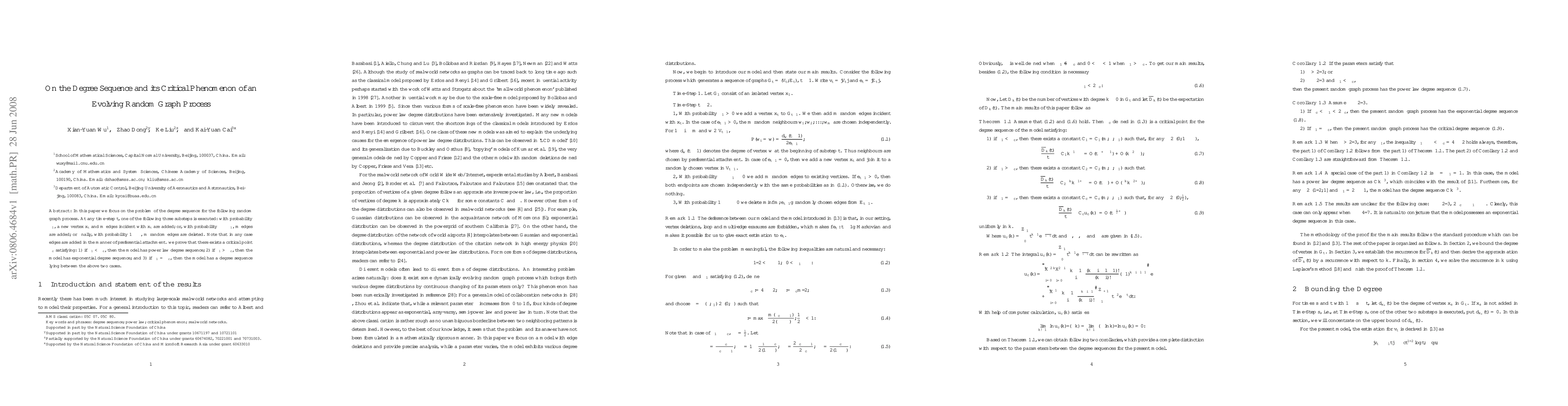 This paper investigates an evolving random graph process where edges are added or deleted according to preferential attachment rules. It identifies a critical point $\alpha_c$ that determines the degree sequence: power law if $\alpha_1 < \alpha_c$, exponential if $\alpha_1 > \alpha_c$, and a hybrid sequence if $\alpha_1 = \alpha_c$.