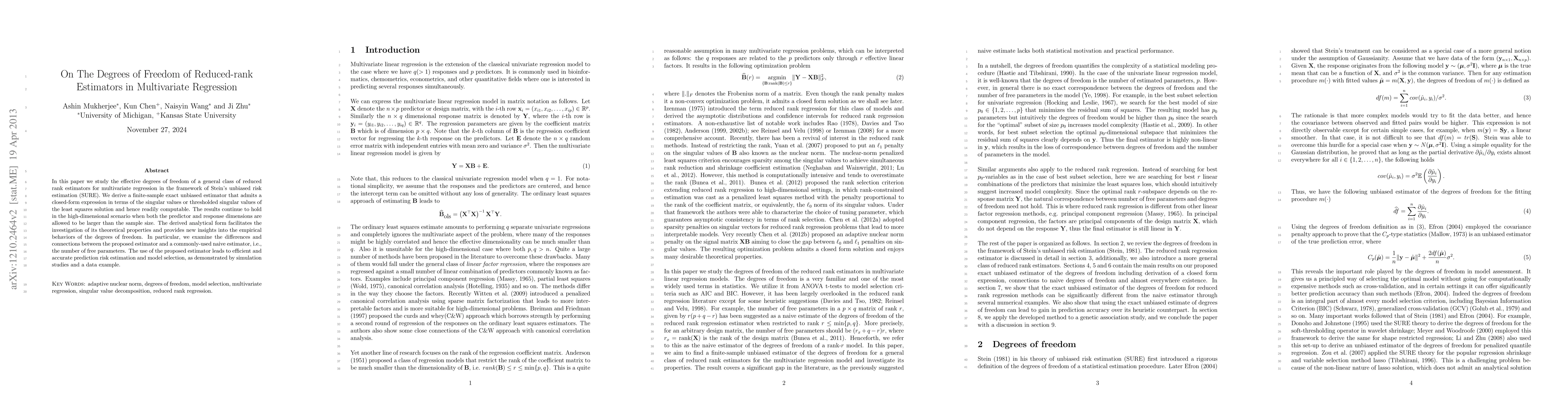 This paper develops a finite-sample exact unbiased estimator for the effective degrees of freedom of reduced-rank estimators in multivariate regression, derived using Stein's SURE framework. The proposed estimator, based on singular values, provides insights into prediction risk and model selection, outperforming the naive parameter count estimator.