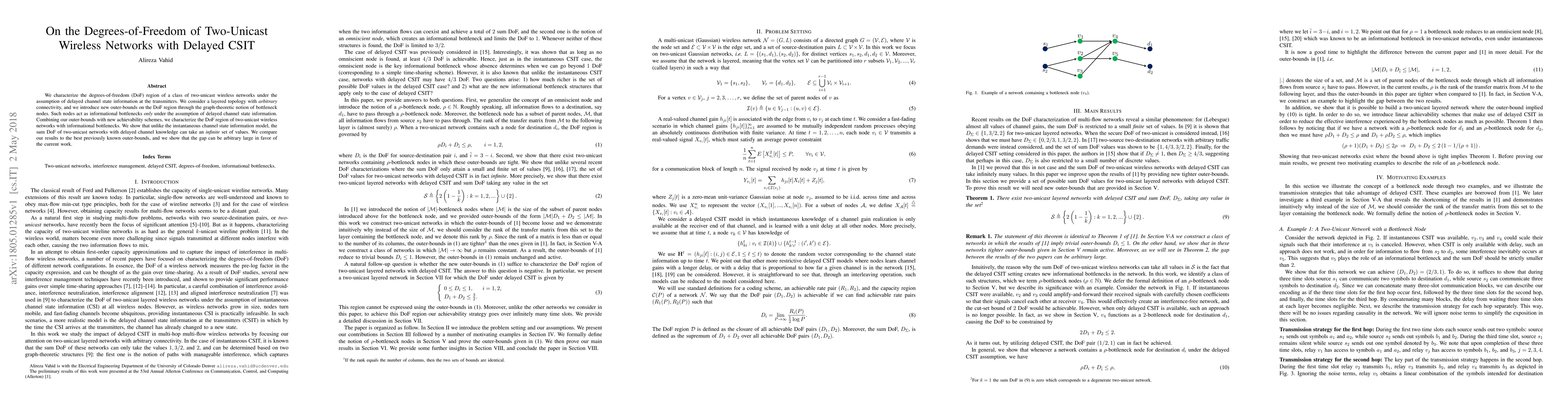 This paper characterizes the degrees-of-freedom (DoF) region for two-unicast wireless networks with delayed channel state information (CSIT). It introduces new outer-bounds using bottleneck nodes and shows that the sum DoF can take an infinite set of values, significantly improving upon previous results.