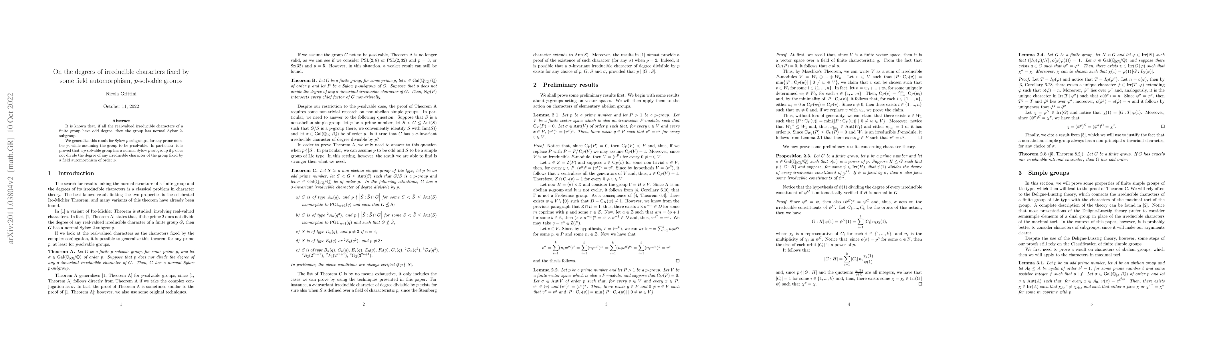 Summary: This paper generalizes the result that a group with all real-valued irreducible characters of odd degree has a normal Sylow 2-subgroup to $p$-solvable groups, showing that such groups have a normal Sylow $p$-subgroup if $p$ does not divide the degree of any irreducible character fixed by a field automorphism of order $p$.