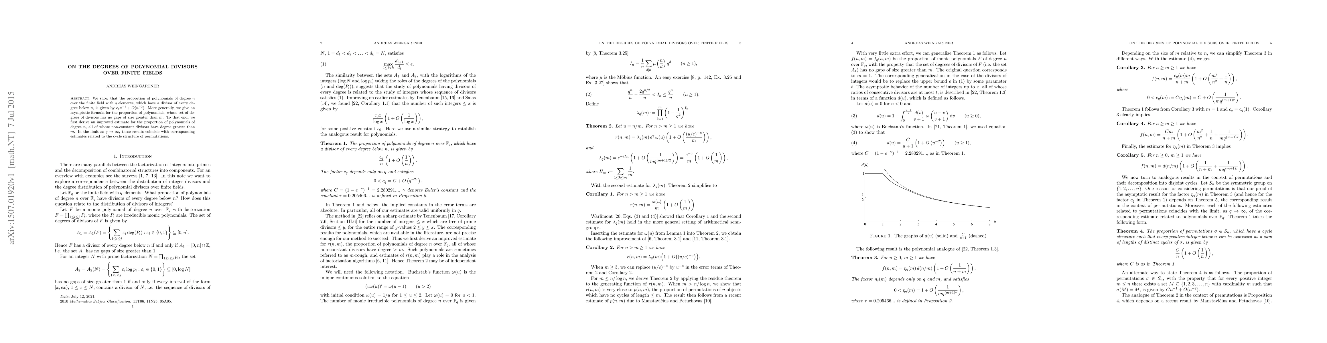 We show that the proportion of polynomials of degree $n$ over the finite field with $q$ elements, which have a divisor of every degree below $n$, is given by $c_q n^{-1} + O(n^{-2})$. More generally, we give an asymptotic formula for the proportion of polynomials, whose set of degrees of divisors has no gaps of size greater than $m$. To that end, we first derive an improved estimate for the proportion of polynomials of degree $n$, all of whose non-constant divisors have degree greater than $m$. In the limit as $q \to \infty$, these results coincide with corresponding estimates related to the cycle structure of permutations.