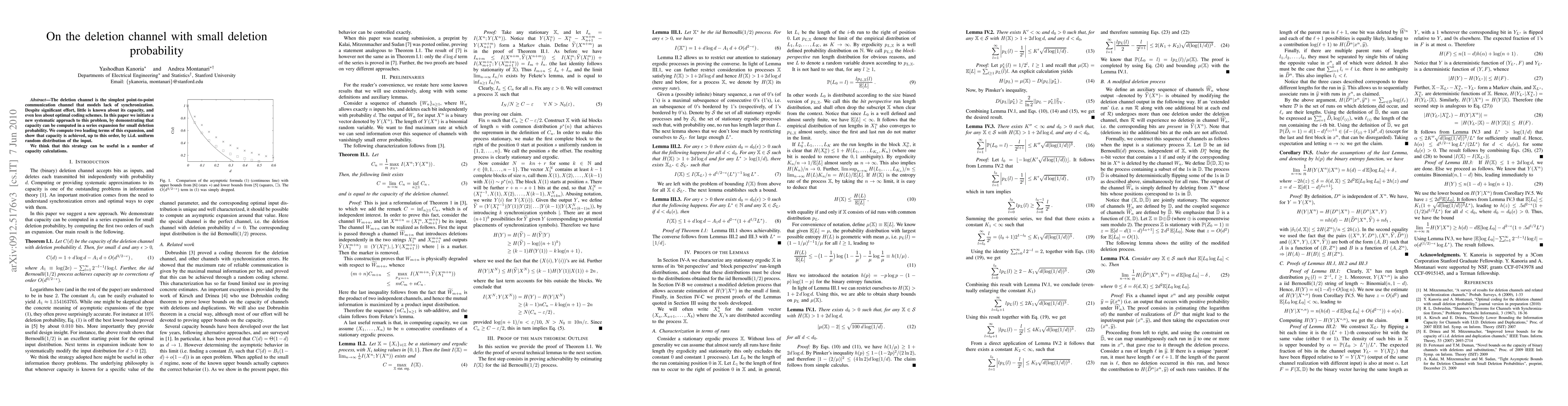 This paper introduces a new method to compute the capacity of the deletion channel for small deletion probabilities through a series expansion. It finds that the first two terms of the expansion indicate that capacity is achieved by an i.i.d. uniform random distribution of the input, suggesting a potential strategy for future capacity calculations.