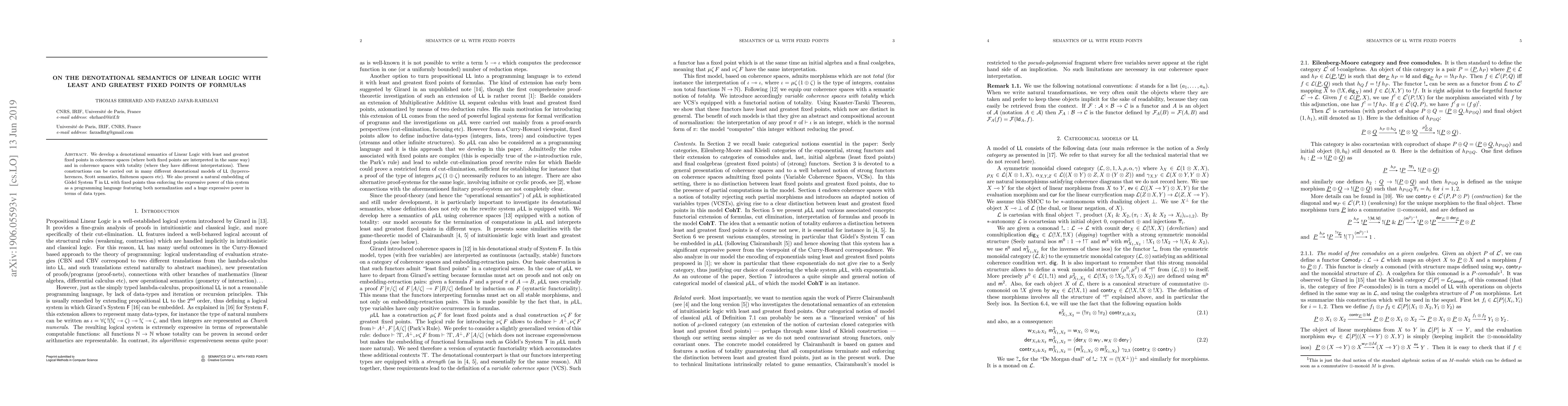 This paper develops a denotational semantics for Linear Logic with least and greatest fixed points using coherence spaces and related models, and demonstrates the expressive power of Gödel System T embedded within this framework.