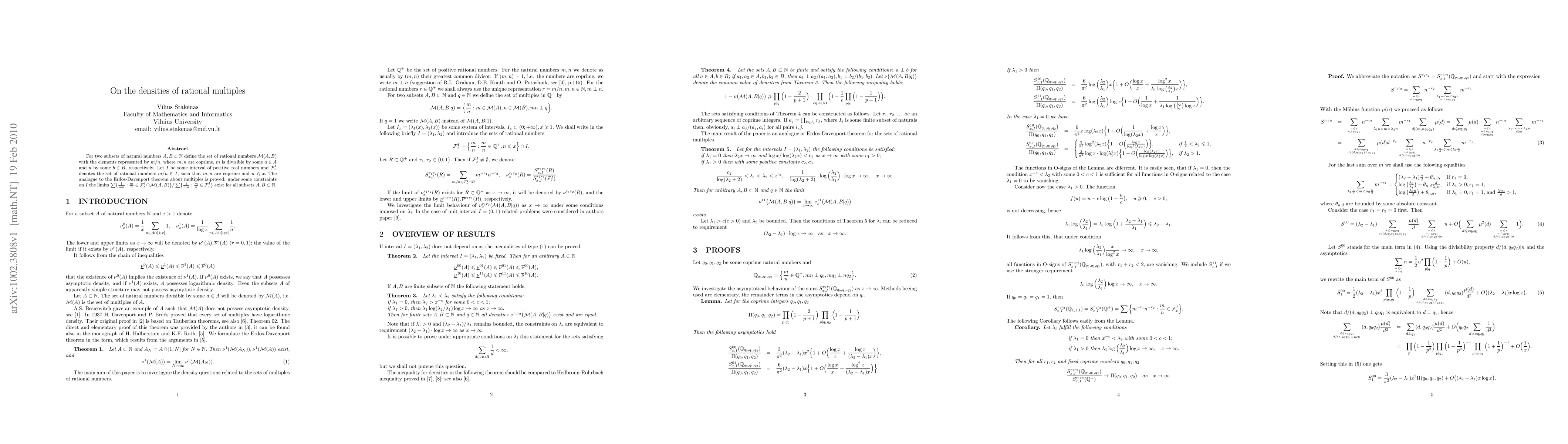 Summary: This paper extends the Erdos-Davenport theorem to rational multiples, proving that any set of rational numbers has a set of their multiples that possesses logarithmic density. This generalizes the original theorem which applies to natural number multiples.