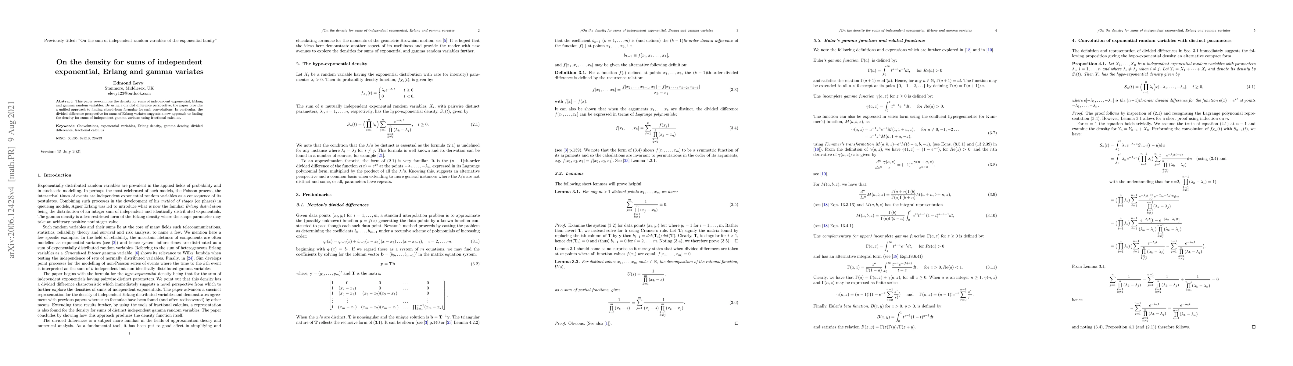 This paper re-examines the density for sums of independent exponential, Erlang and gamma random variables. By using a divided difference perspective, the paper provides a unified approach to finding closed-form formulae for such convolutions. In particular, the divided difference perspective for sums of Erlang variates suggests a new approach to finding the density for sums of independent gamma variates using fractional calculus.