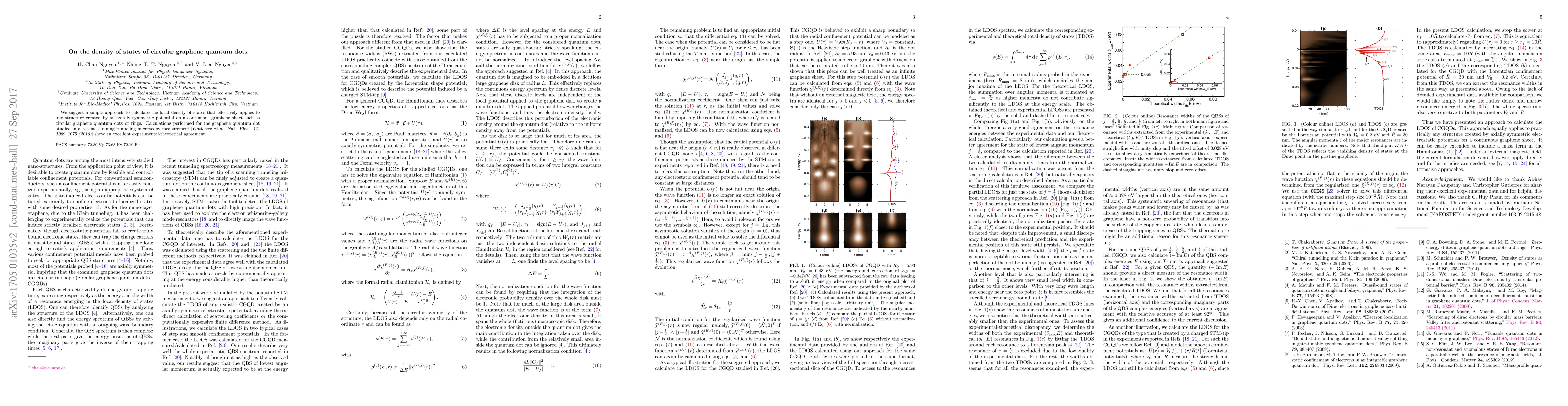 This research proposes a straightforward method to calculate the local density of states for axially symmetric potentials on graphene sheets, specifically focusing on circular graphene quantum dots. The theoretical results align well with recent experimental data from scanning tunneling microscopy.
