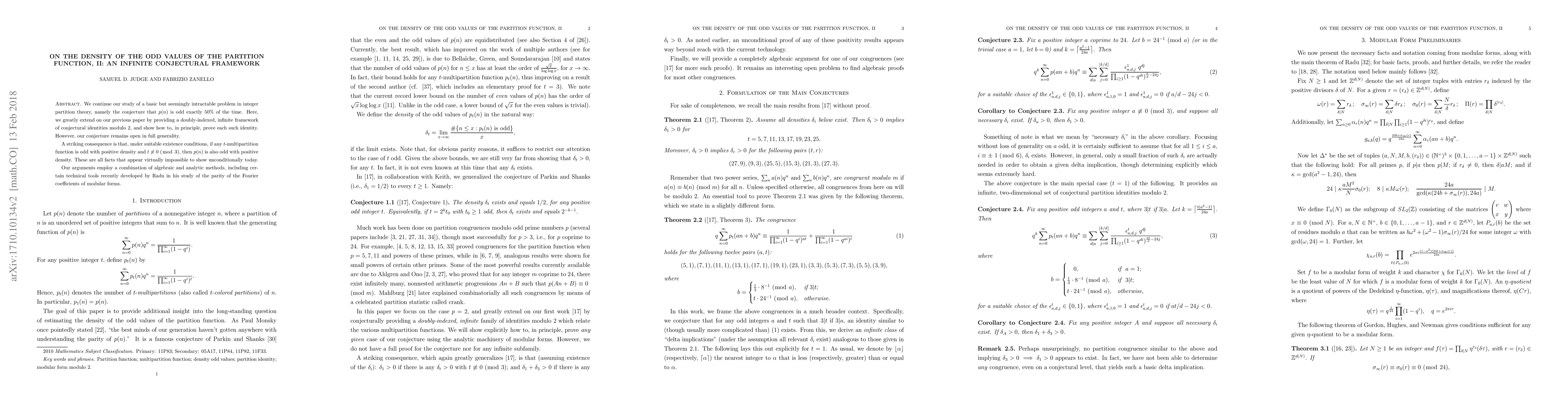 A research paper proposes a framework for understanding the parity of partition functions in integer partition theory, suggesting that certain conditions can imply the oddness of $p(n)$ with positive density, but leaving the conjecture open in full generality.