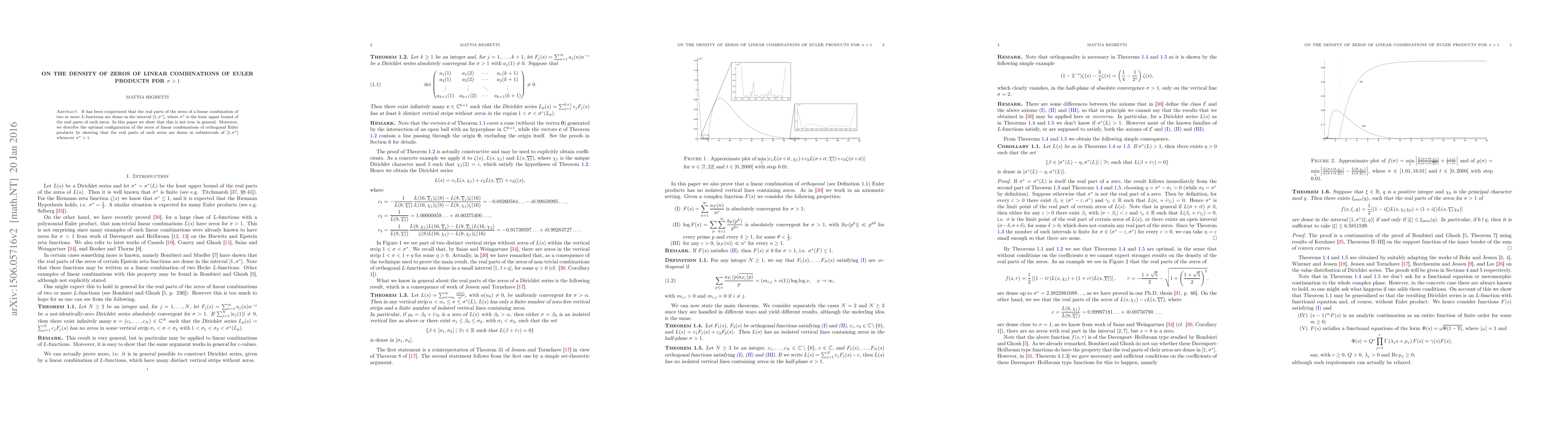 It has been conjectured that the real parts of the zeros of a linear combination of two or more $L$-functions are dense in the interval $[1,\sigma^*]$, where $\sigma^*$ is the least upper bound of the real parts of such zeros. In this paper we show that this is not true in general. Moreover, we describe the optimal configuration of the zeros of linear combinations of orthogonal Euler products by showing that the real parts of such zeros are dense in subintervals of $[1,\sigma^*]$ whenever $\sigma^*>1$.