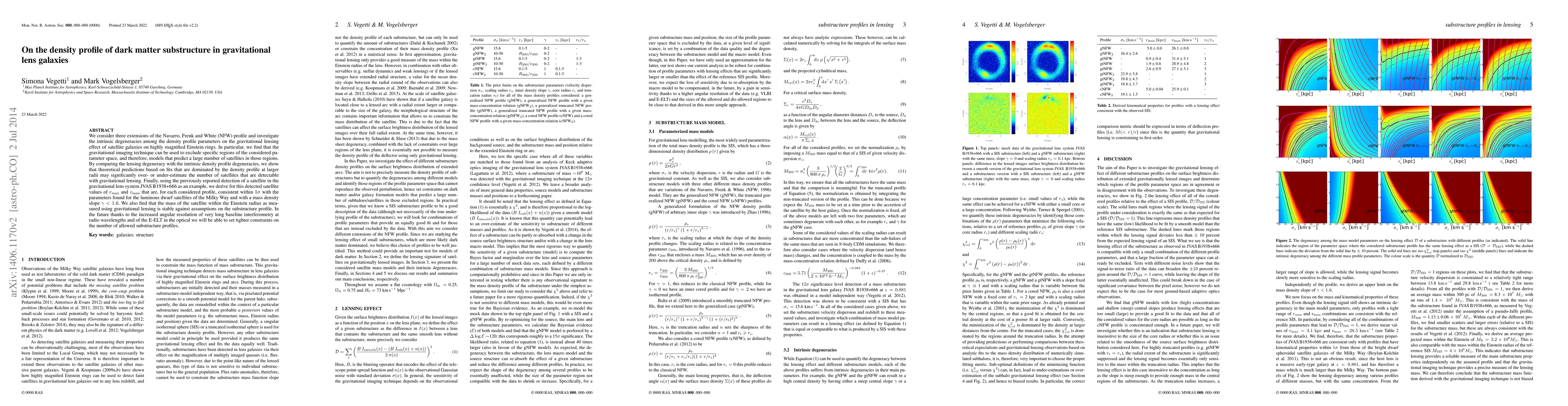 The paper investigates the density profile of dark matter substructure in gravitational lens galaxies using NFW profiles and finds that certain regions can be excluded based on lensing effects, allowing for more accurate satellite detection.