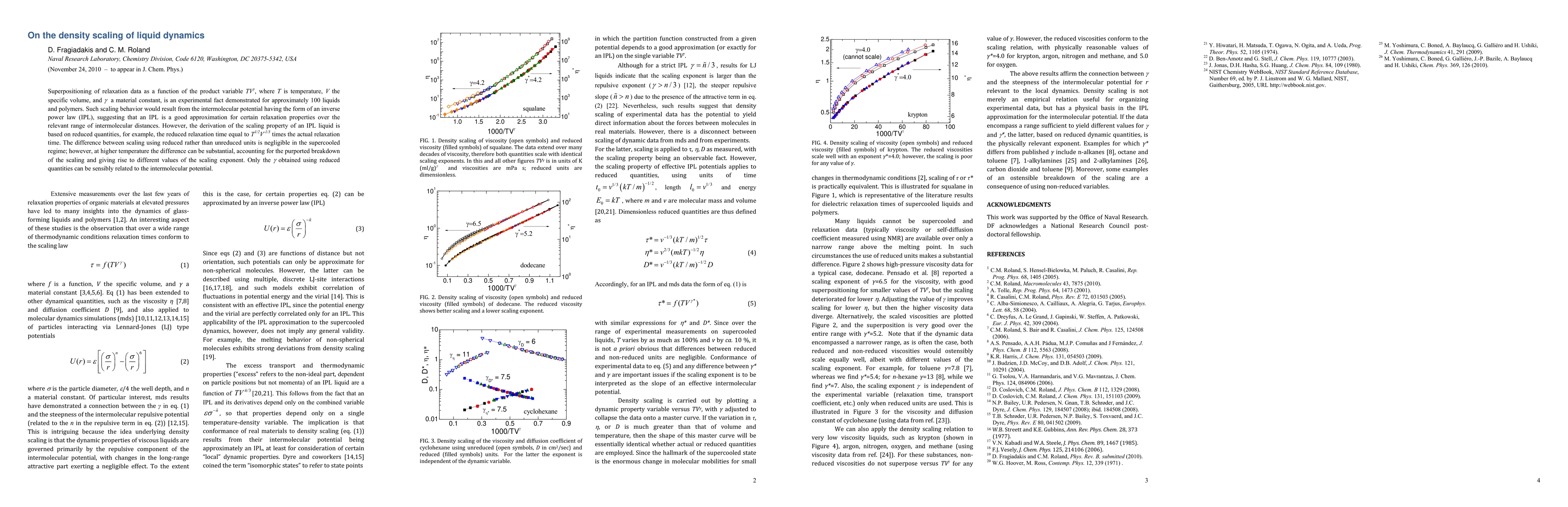 Superpositioning of relaxation data as a function of the product variable TV^{\gamma}, where T is temperature, V the specific volume, and {\gamma} a material constant, is an experimental fact demonstrated for approximately 100 liquids and polymers. Such scaling behavior would result from the intermolecular potential having the form of an inverse power law (IPL), suggesting that an IPL is a good approximation for certain relaxation properties over the relevant range of intermolecular distances. However, the derivation of the scaling property of an IPL liquid is based on reduced quantities, for example, the reduced relaxation time equal to T^1/2V^-1/3 times the actual relaxation time. The difference between scaling using reduced rather than unreduced units is negligible in the supercooled regime; however, at higher temperature the difference can be substantial, accounting for the purported breakdown of the scaling and giving rise to different values of the scaling exponent. Only the {\gamma} obtained using reduced quantities can be sensibly related to the intermolecular potential.