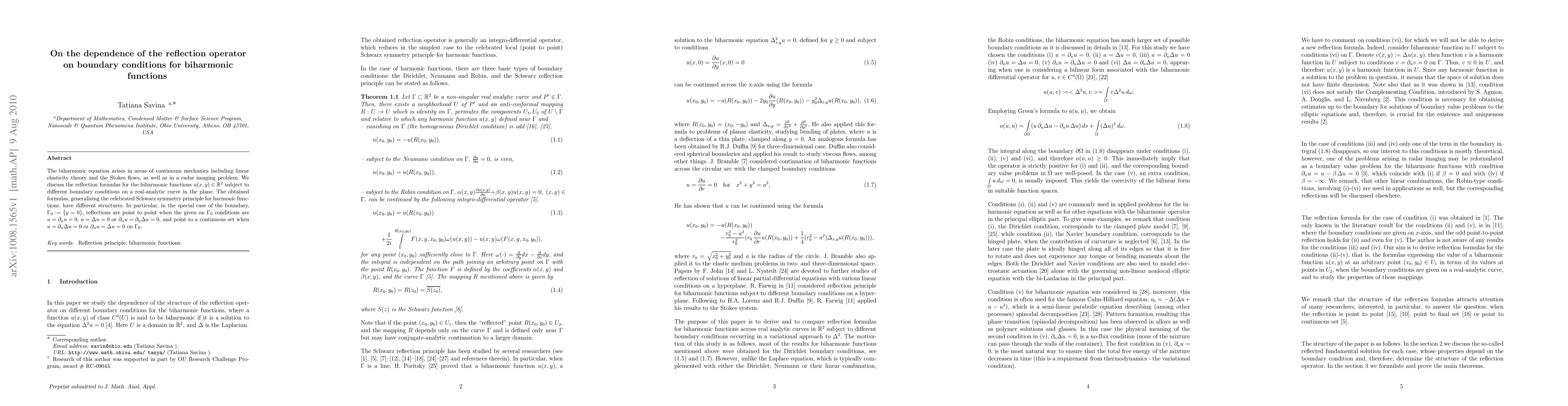 The biharmonic equation arises in areas of continuum mechanics including linear elasticity theory and the Stokes flows, as well as in a radar imaging problem. We discuss the reflection formulas for the biharmonic functions $u(x,y)\in\mathbb{R}^2$ subject to different boundary conditions on a real-analytic curve in the plane. The obtained formulas, generalizing the celebrated Schwarz symmetry principle for harmonic functions, have different structures. In particular, in the special case of the boundary, $\Gamma_0 :=\{y=0\}$, reflections are point to point when the given on $\Gamma_0$ conditions are $u=\partial_nu=0$, $u=\Delta u=0$ or $\partial_nu=\partial n\Delta u=0$, and point to a continuous set when $u=\partial_n\Delta u=0$ or $\partial_nu=\Delta u=0$ on $\Gamma_0$.
