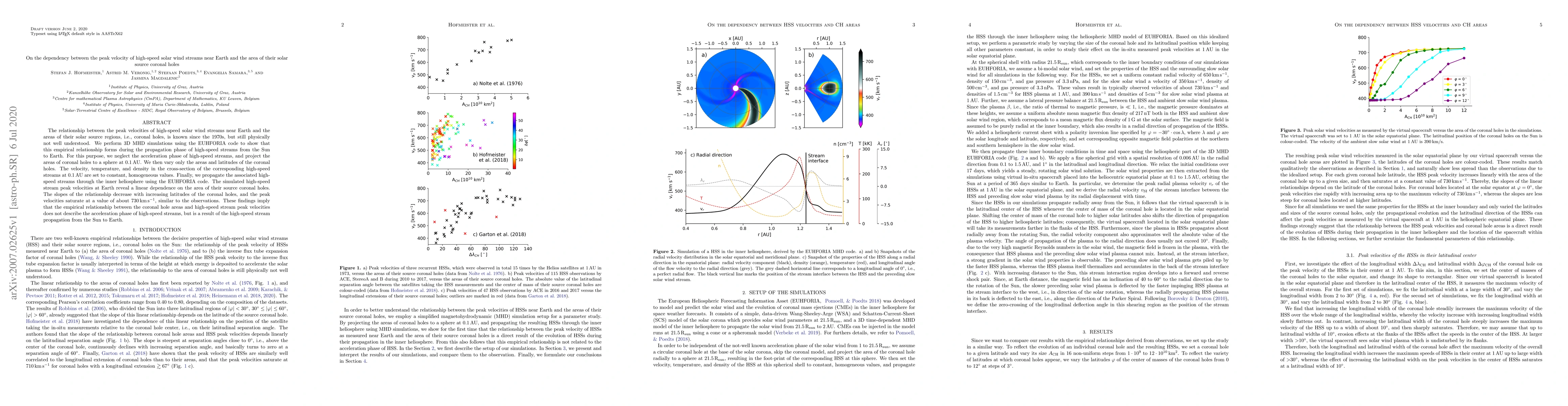 This study uses 3D MHD simulations to demonstrate that the peak velocities of high-speed solar wind streams near Earth are linearly dependent on the areas of their coronal hole sources, with the relationship forming during propagation rather than the acceleration phase. The findings suggest that the empirical relationship is influenced by the stream's journey from the Sun to Earth.
