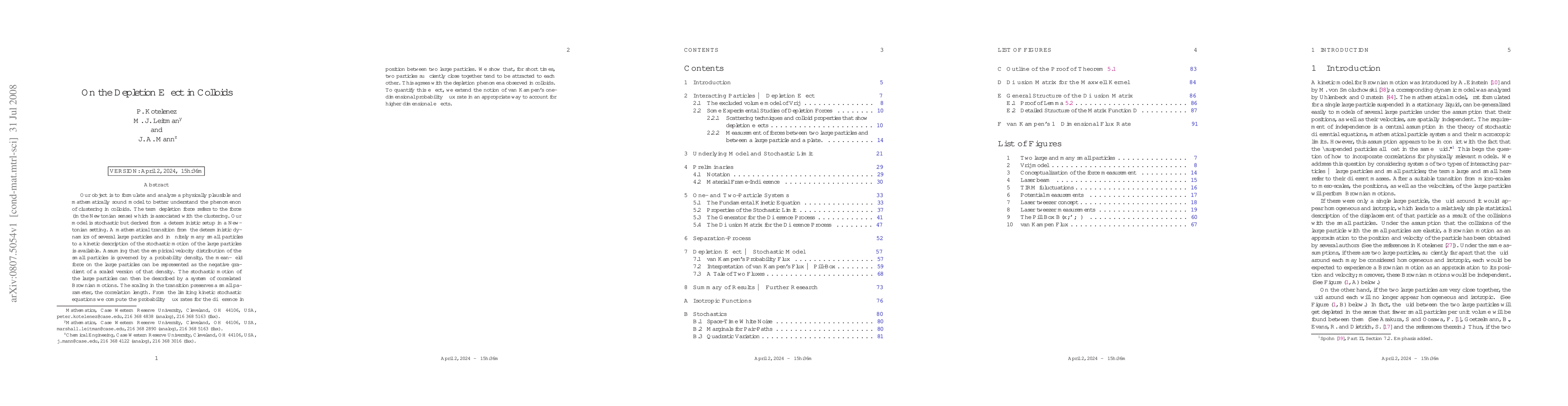 Our object is to formulate and analyze a physically plausible and mathematically sound model to better understand the phenomenon of clumping in colloid dispersions. Our model is stochastic but rigorously derived from a deterministic setup in a Newtonian setting. A rigorous transition from deterministic mean-field dynamics of several large particles and infinitely many small particles to the stochastic motion of the large particles is invoked. Then the stochastic motion of the large particles is described by a system of correlated Brownian motions. The scaling in the transition preserves a characteristic correlation length. From the limiting stochastic equations we compute the probability fluxes for the separation between two large particles. We show that, for short times, two particles sufficiently close together tend to be attracted to each other. This agrees with the observed depletion phenomena in colloids. To do this computation, we extend the notion of Van Kampen's one-dimensional flux rate in an appropriate way to account for higher dimensional effect.