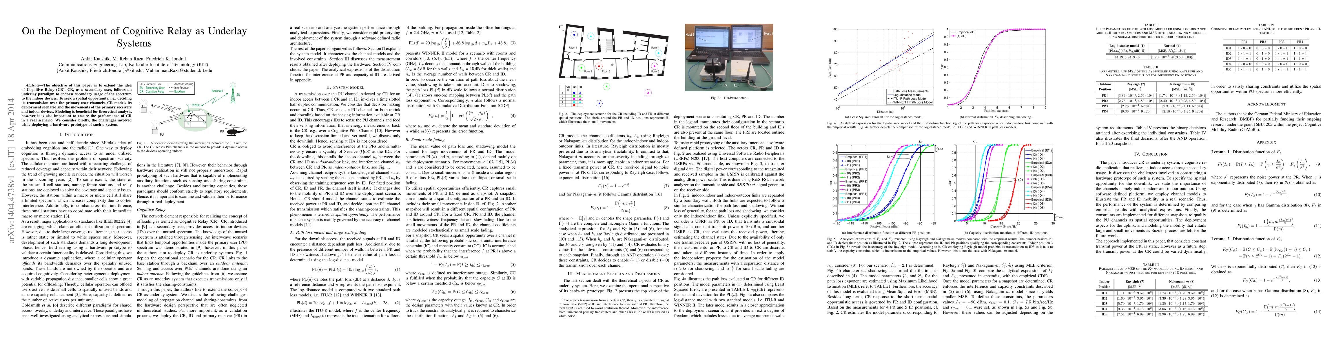 This paper explores the deployment of Cognitive Relay (CR) as an underlay system to enable secondary spectrum usage for indoor devices. It models the deployment scenario and movement patterns of primary receivers and indoor devices to optimize CR performance, while also addressing challenges in developing a hardware prototype.
