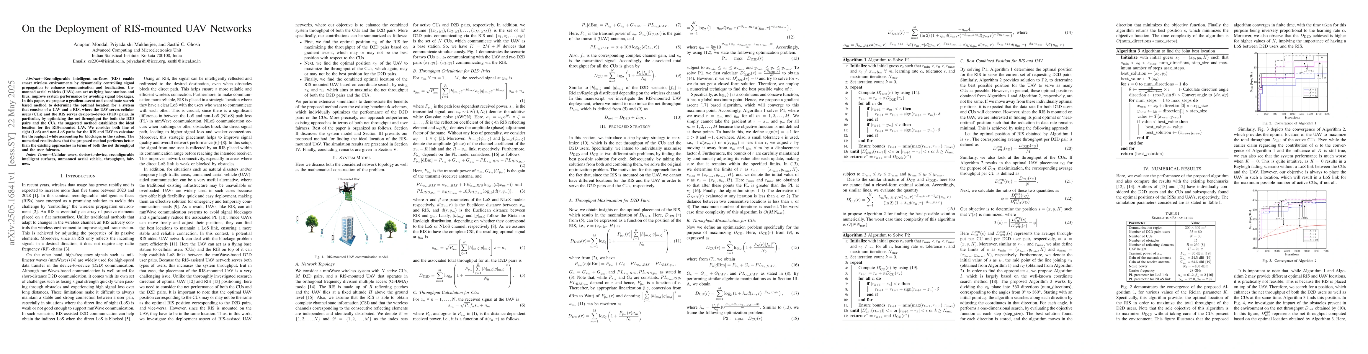 The paper proposes a gradient ascent and coordinate search based method to determine the optimal location for a UAV and RIS system, optimizing net throughput for both D2D pairs and cellular users (CUs) while considering LoS and non-LoS paths.