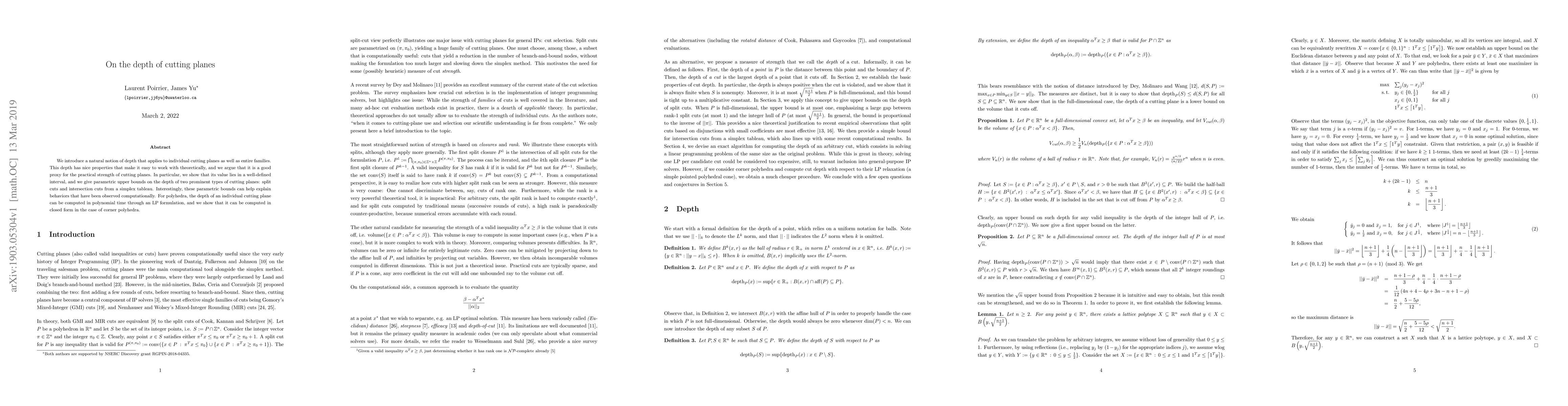 This paper introduces a theoretical depth measure for cutting planes and families of cutting planes, demonstrating its practical relevance and computational tractability. It provides parametric upper bounds for split cuts and intersection cuts, and shows that the depth can be computed in polynomial time for general polyhedra and in closed form for corner polyhedra.