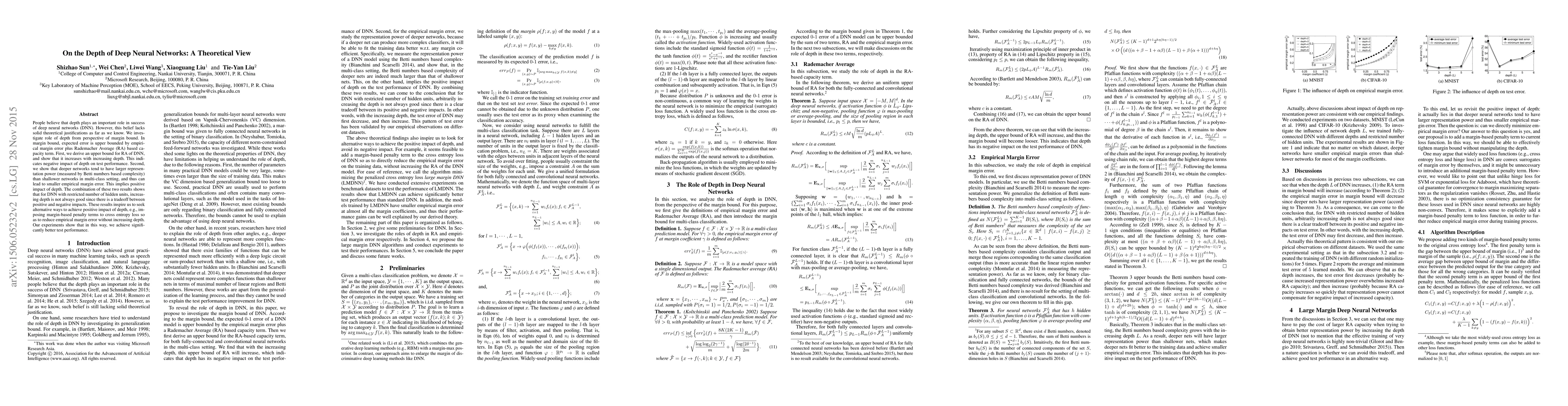 Research finds that increasing depth in deep neural networks may have both positive and negative impacts on performance, with a tradeoff between representation power and error rates. Alternative approaches, such as imposing margin-based penalty terms, can achieve better test performance without increasing network depth.