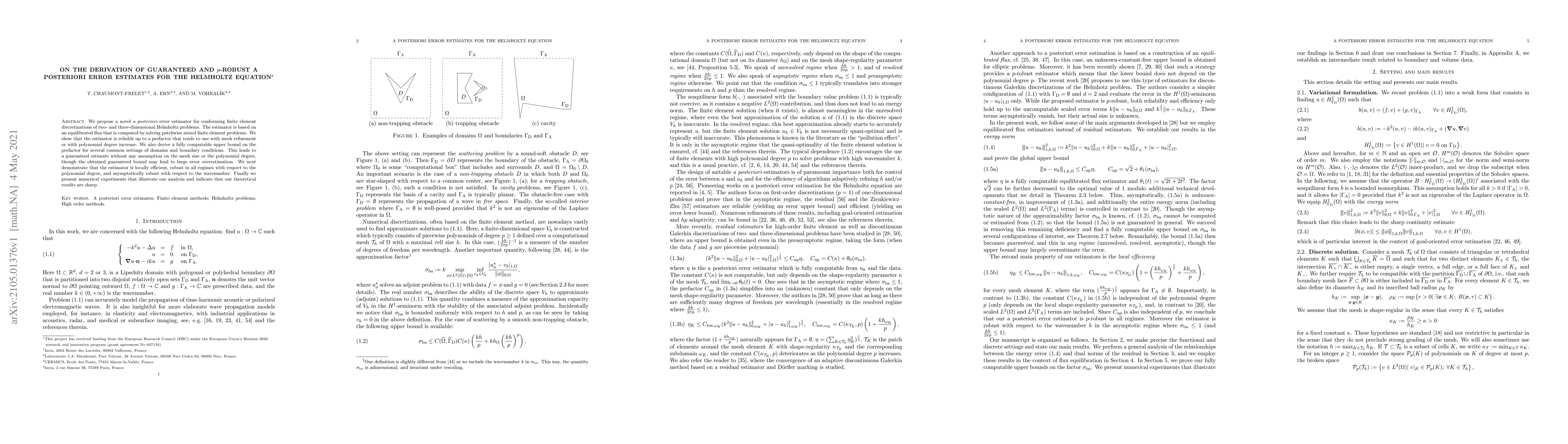 This paper introduces a new a posteriori error estimator for finite element solutions of the Helmholtz equation, showing it is reliable and robust across varying mesh sizes and polynomial degrees. The estimator is based on equilibrated flux and provides guaranteed estimates, though potentially with large error overestimations.