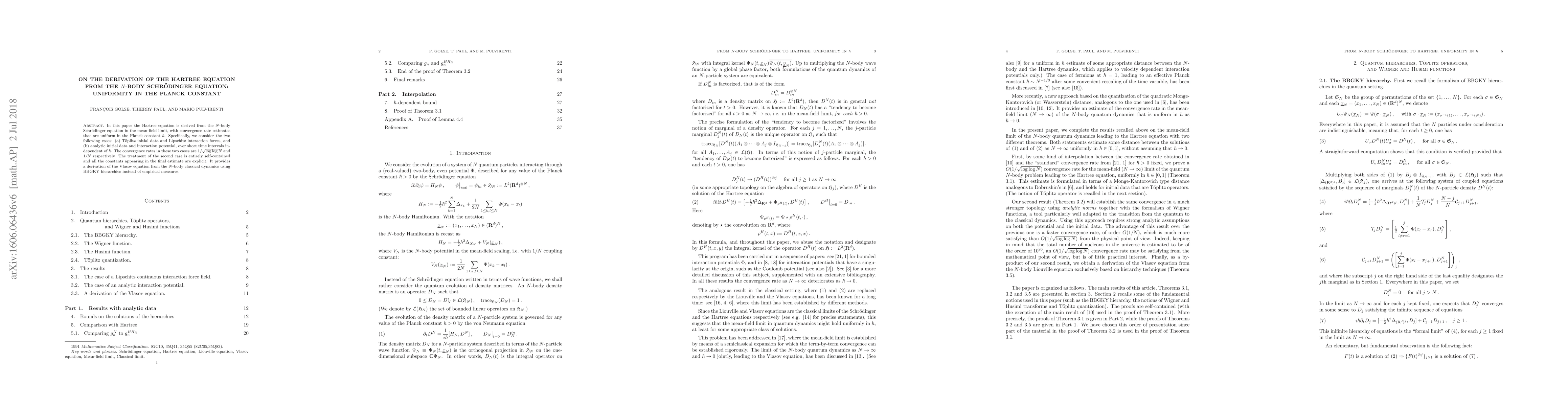 In this paper the Hartree equation is derived from the $N$-body Schr\''odinger equation in the mean-field limit, with convergence rate estimates that are uniform in the Planck constant $\hbar$. Specifically, we consider the two following cases:(a) T\''oplitz initial data and Lipschitz interaction forces, and (b) analytic initial data and interaction potential, over short time intervals independent of $\hbar$. The convergence rates in these two cases are $1/\sqrt{\log\log N}$ and $1/N$ respectively. The treatment of the second case is entirely self-contained and all the constants appearing in the final estimate are explicit. It provides a derivation of the Vlasov equation from the $N$-body classical dynamics using BBGKY hierarchies instead of empirical measures.