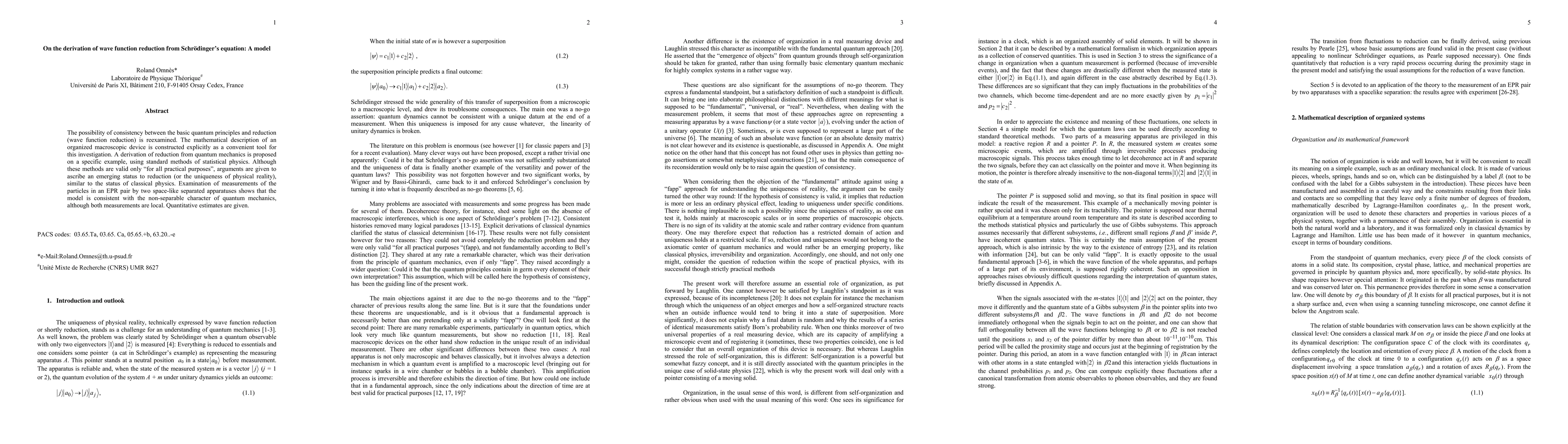 This paper proposes a model to derive wave function reduction from Schrödinger's equation, using statistical physics methods to show consistency with quantum principles. The model suggests a unique physical reality akin to classical physics, demonstrated through measurements of an EPR pair.
