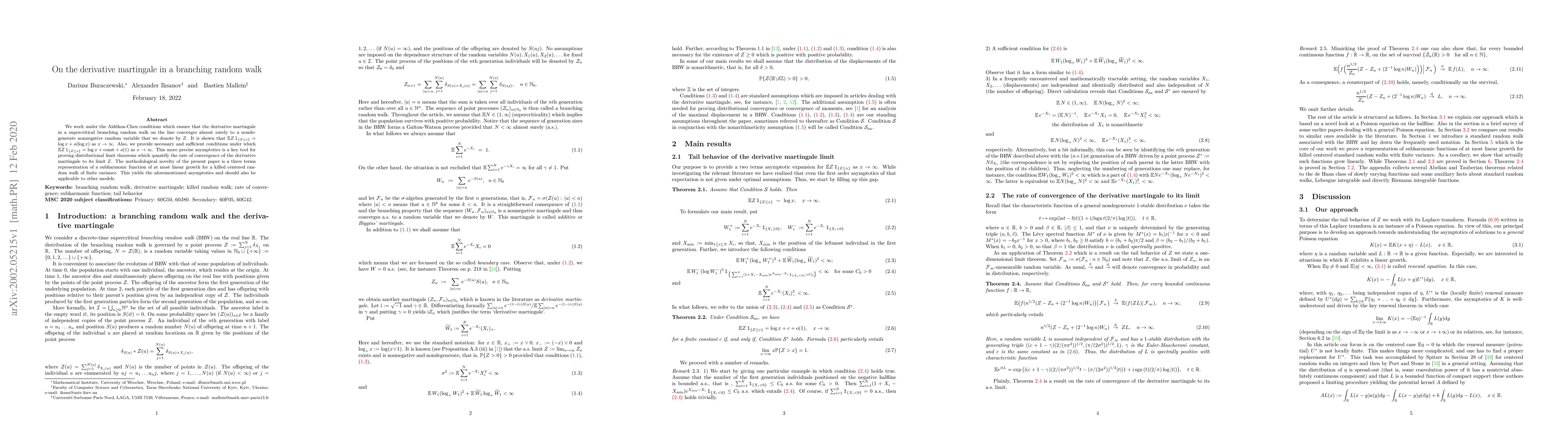 The paper employs the Aïdékon-Chen conditions to study the derivative martingale in a supercritical branching random walk on the line, demonstrating almost sure convergence to a nondegenerate, nonnegative random variable Z.