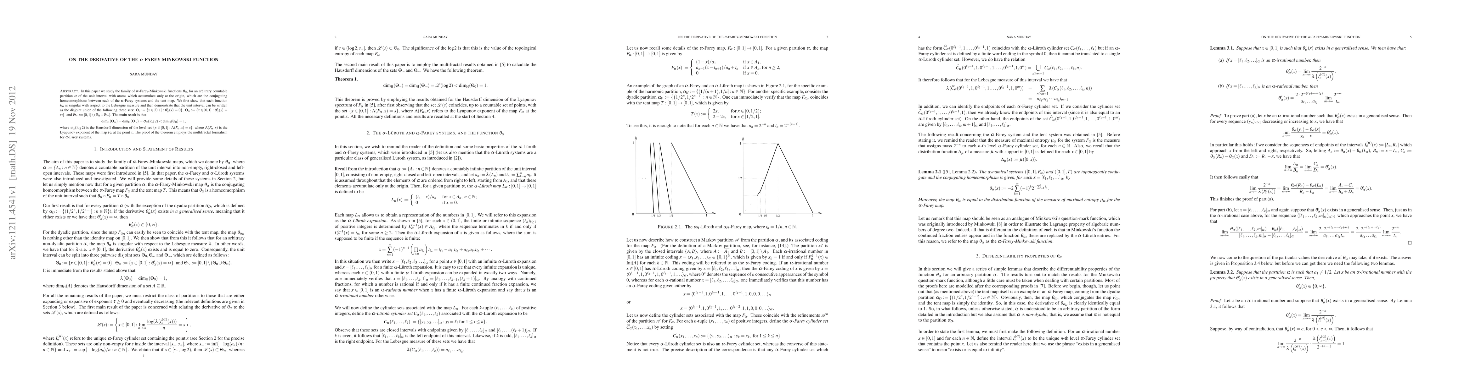 Researchers studied the derivative of the alpha-Farey-Minkowski function, finding that certain sets within the unit interval have a Hausdorff dimension related to the partition of the interval.
