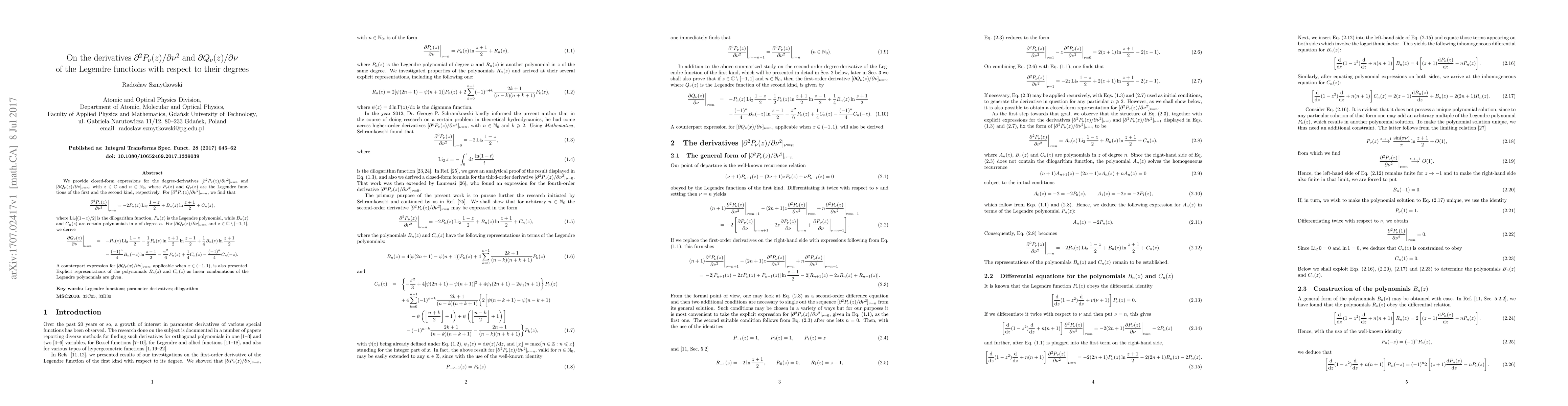 This paper provides closed-form expressions for the second derivative of the Legendre function of the first kind and the derivative of the Legendre function of the second kind with respect to their degrees. The results include explicit representations involving dilogarithm functions, Legendre polynomials, and certain polynomials in the variable z.