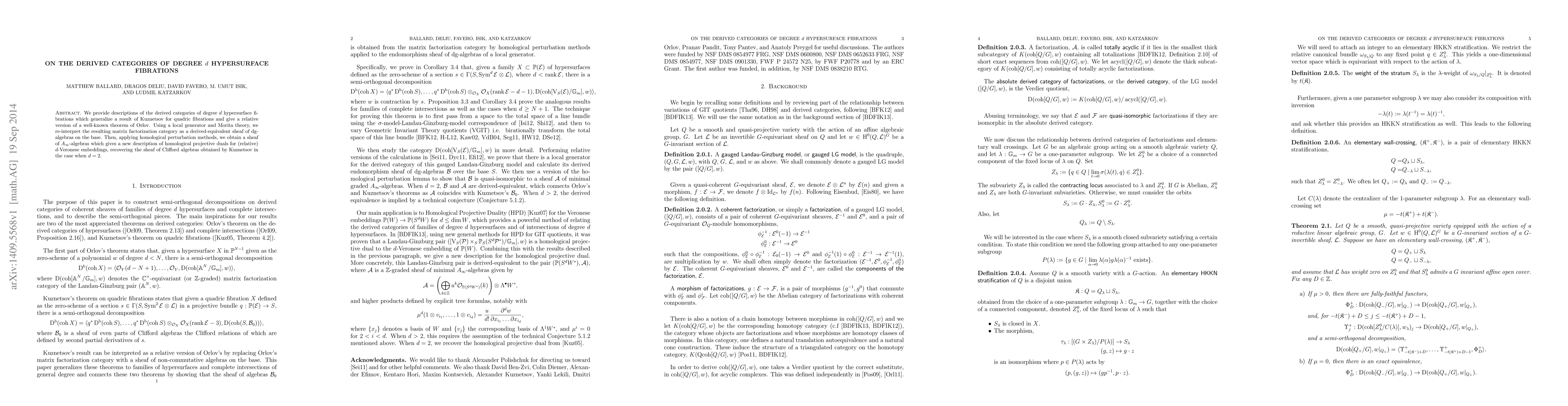 This paper generalizes Kuznetsov's results on derived categories for quadric fibrations to degree $d$ hypersurface fibrations. It introduces a sheaf of $A_\infty$-algebras to describe homological projective duals for relative $d$-Veronese embeddings, and recovers Kuznetsov's results for $d=2$.