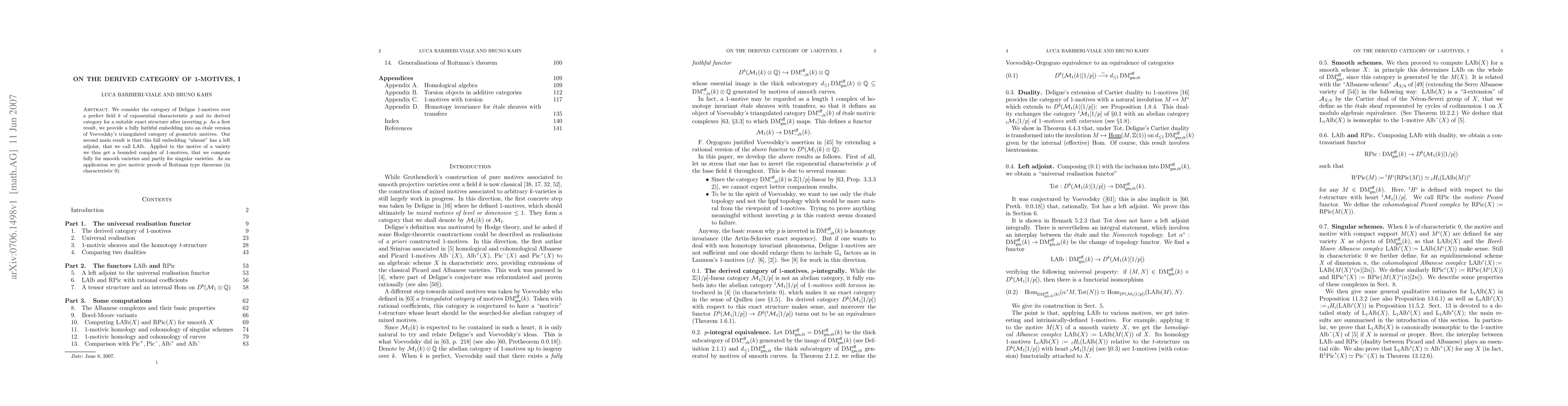 We consider the category of Deligne 1-motives over a perfect field k of exponential characteristic p and its derived category for a suitable exact structure after inverting p. As a first result, we provide a fully faithful embedding into an etale version of Voevodsky's triangulated category of geometric motives. Our second main result is that this full embedding "almost" has a left adjoint, that we call \LAlb. Applied to the motive of a variety we thus get a bounded complex of 1-motives, that we compute fully for smooth varieties and partly for singular varieties. As an application we give motivic proofs of Roitman type theorems (in characteristic 0).
