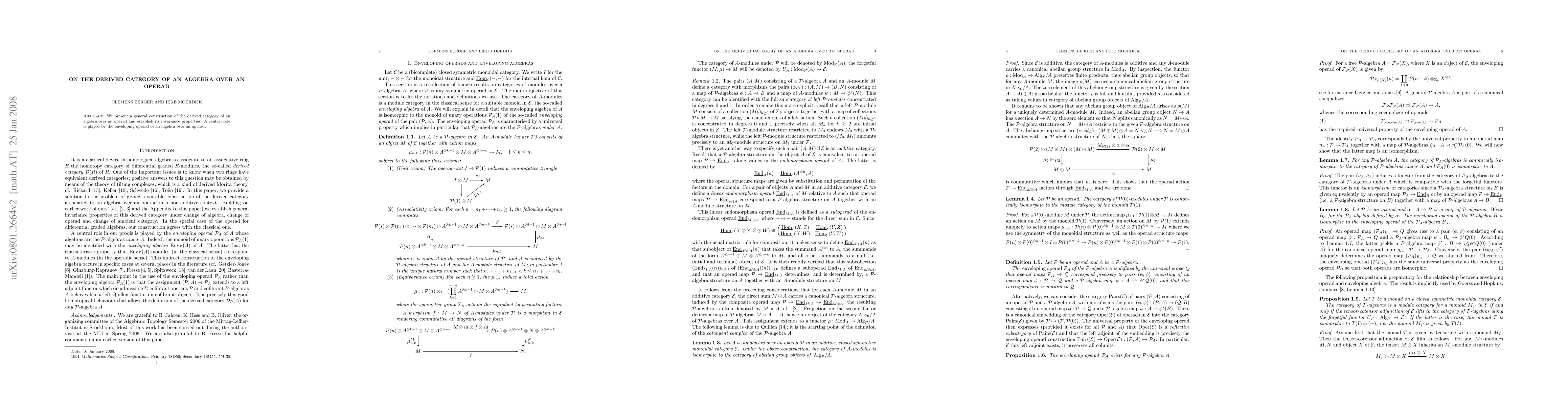 Summary: This paper constructs the derived category for algebras over an operad and demonstrates its invariance properties, emphasizing the significance of the enveloping operad in this construction.