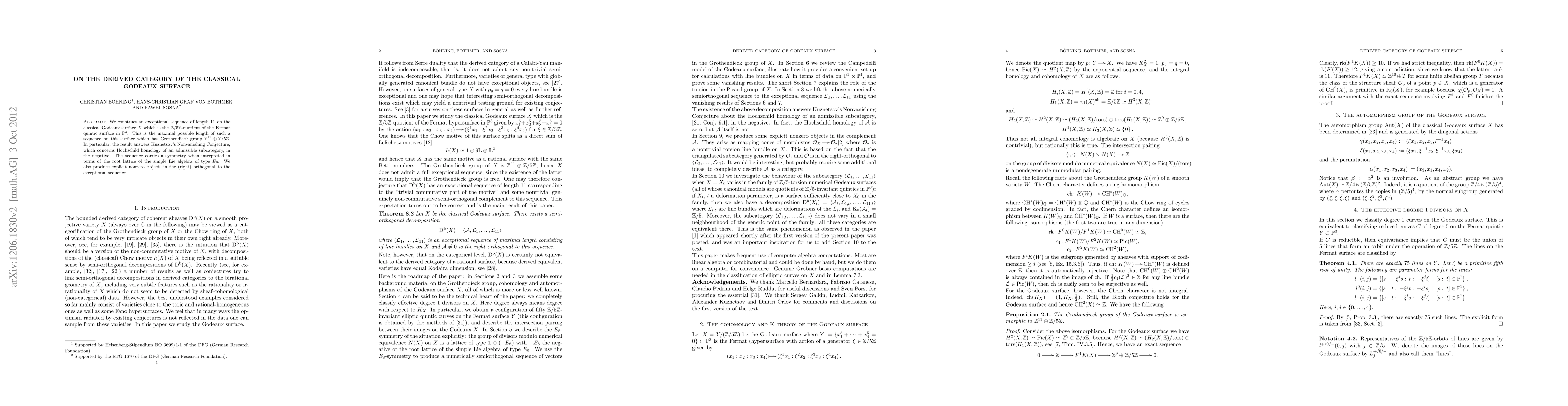 This research constructs an exceptional sequence of length 11 on the classical Godeaux surface, which is the Z/5-quotient of the Fermat quintic surface in P^3. It disproves Kuznetsov's Nonvanishing Conjecture and reveals a symmetry related to the root lattice of type E_8. The study also provides explicit nonzero objects in the orthogonal of the exceptional sequence.
