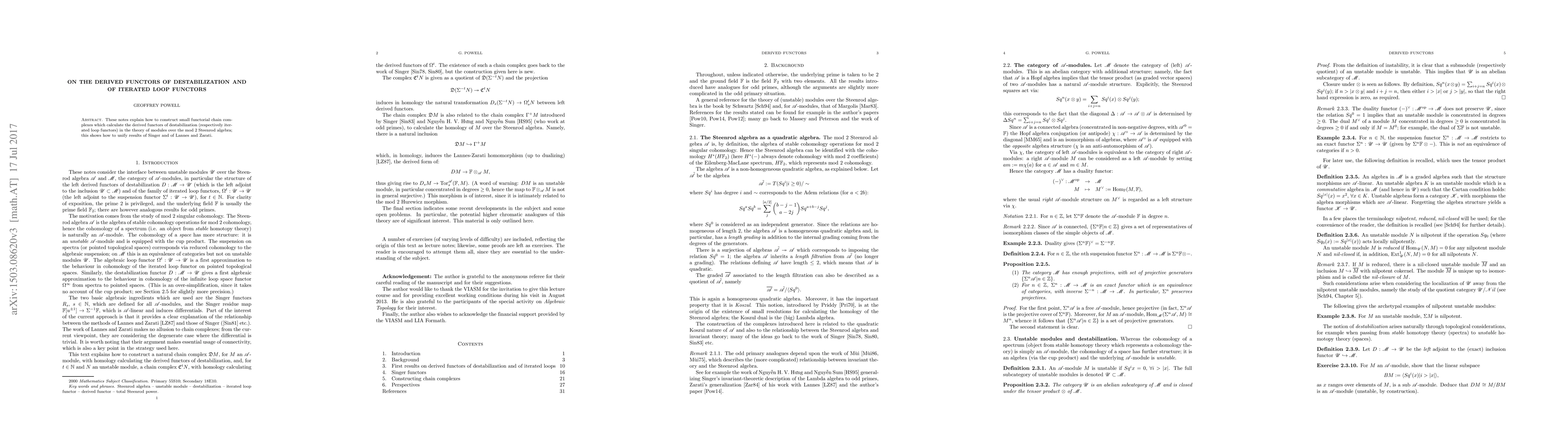 Summary: This paper constructs small functorial chain complexes to compute derived functors of destabilization and iterated loop functors in mod 2 Steenrod algebra module theory, thereby unifying results from Singer and Lannes-Zarati.