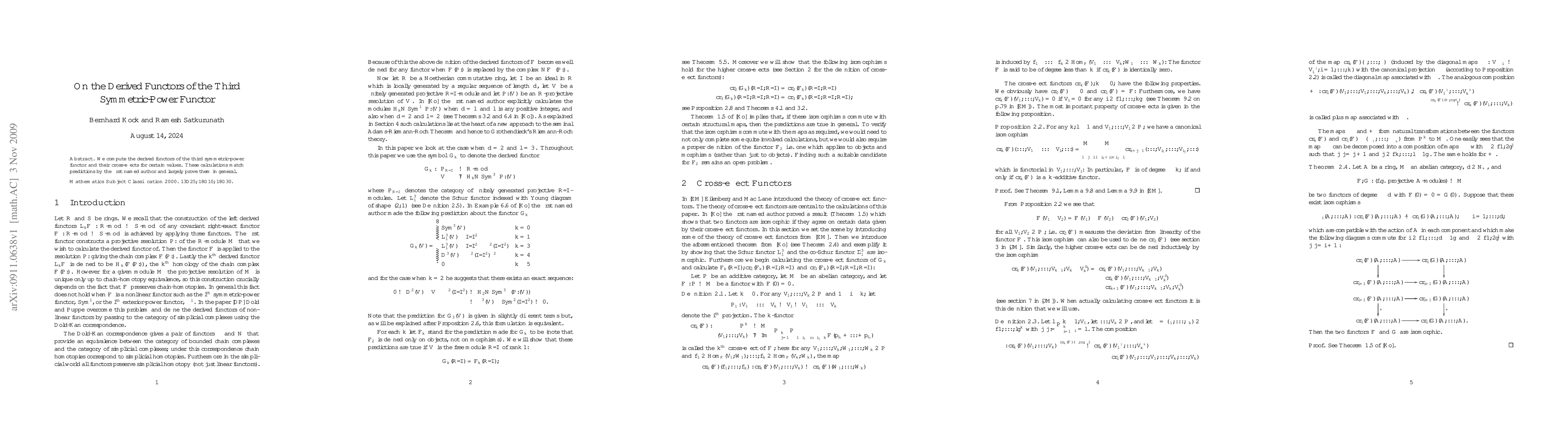 This paper computes the derived functors of the third symmetric-power functor and verifies their cross-effects for specific values, largely confirming predictions made by the first author.