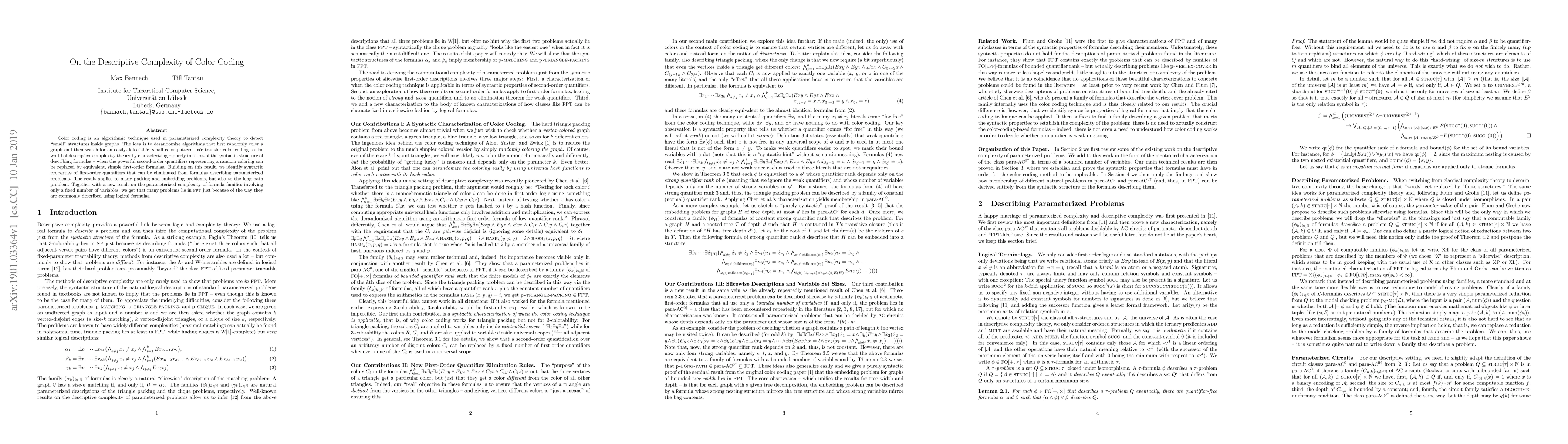 Researchers developed a method to simplify color coding, a technique used in computer science to detect small structures in graphs, into first-order formulas that can be more easily solved. This simplification sheds light on how many problems can be solved in polynomial time due to the way they are commonly described using logical formulas.