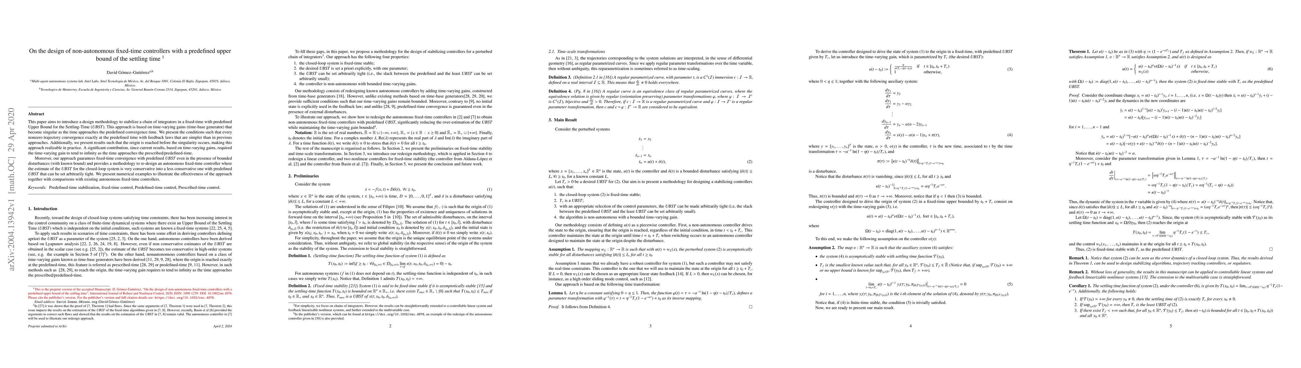 Researchers developed a new approach to design non-autonomous fixed-time controllers that can stabilize chains of integrators within a predefined settling time limit. This method guarantees fixed-time convergence even with disturbances and allows for the re-design of autonomous controllers with tighter settling times.