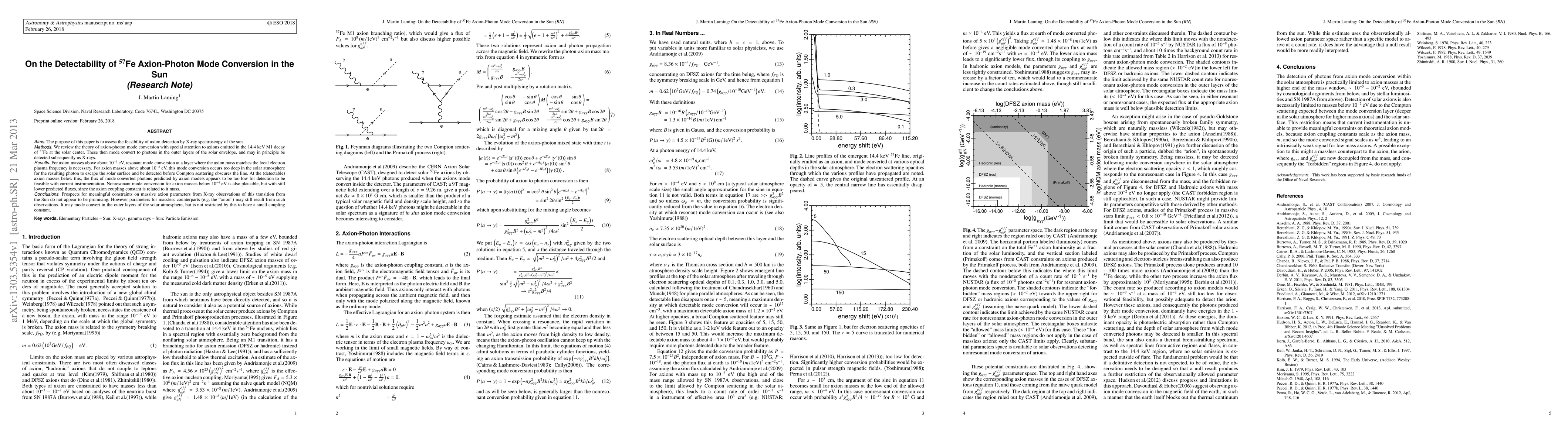 This paper evaluates the potential of detecting axions via X-ray spectroscopy of the Sun, focusing on axion-photon conversion from 57Fe decay. While axions with certain masses could convert to detectable photons, current models predict low fluxes, making detection with existing technology unlikely.