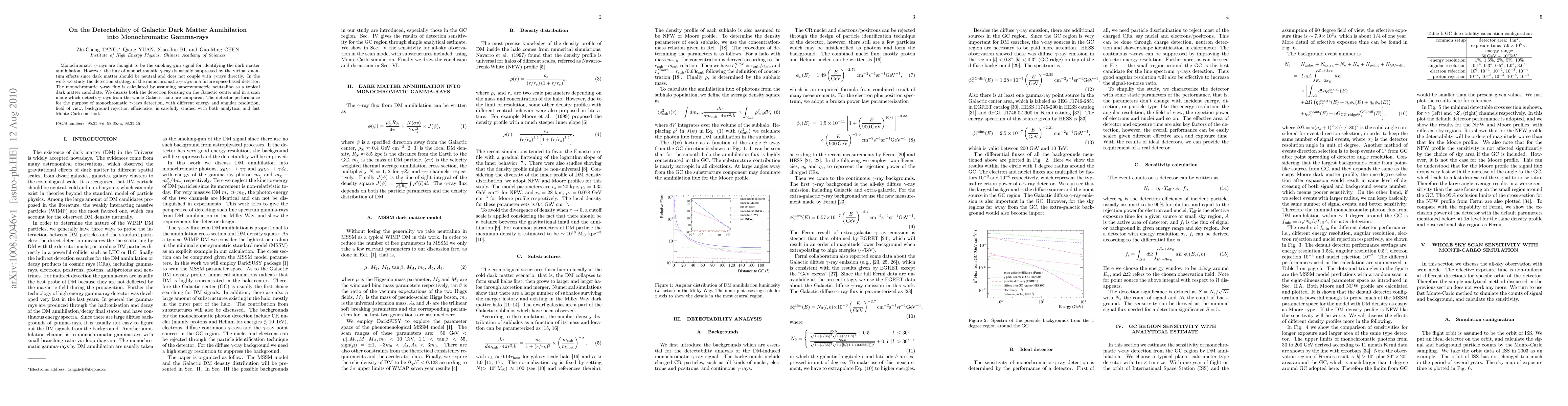 This paper explores the detectability of monochromatic gamma-rays from dark matter annihilation, focusing on the future space-based detector's capability. It examines the flux from a supersymmetric neutralino in the Galactic center and the entire Galactic halo, analyzing detector performance with various resolutions and background rejection methods.