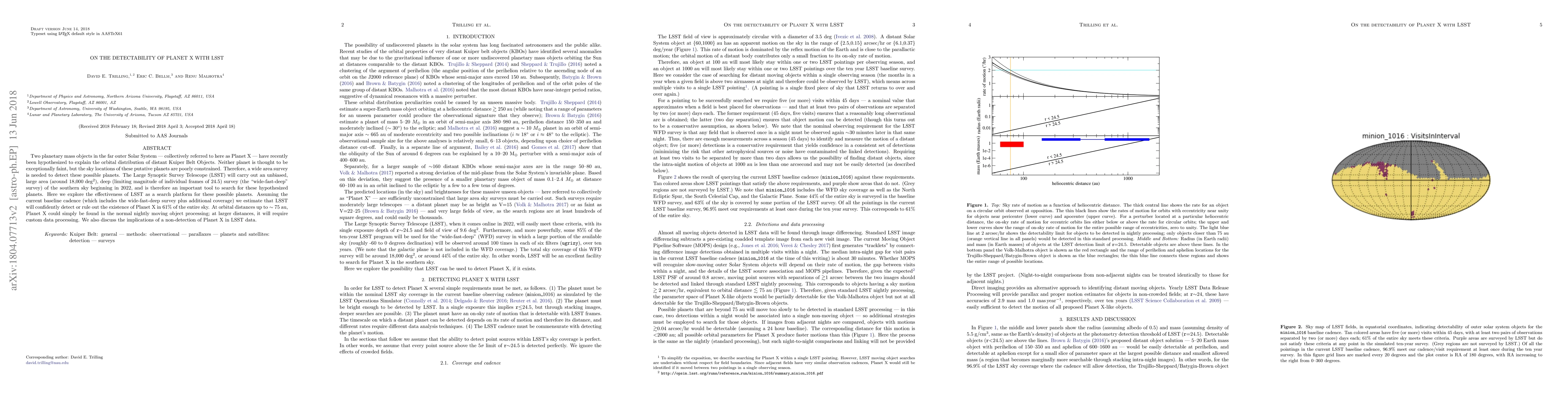 The Large Synoptic Survey Telescope (LSST) is projected to detect or rule out the existence of Planet X in 61% of the sky due to its wide-area, deep survey capabilities. At distances up to ~75 au, Planet X may be found through routine nightly object processing, while larger distances will necessitate custom data analysis.