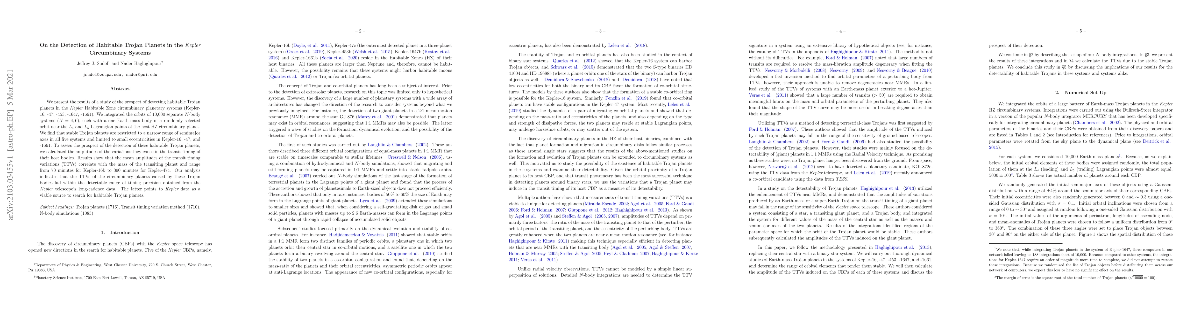 This study investigates the potential detection of habitable Trojan planets in five Kepler circumbinary systems. It finds that stable Trojan planets exist within specific orbital constraints and that their transit timing variations (TTVs) are detectable with Kepler's long-cadence data, suggesting the telescope's data can be used to search for these habitable planets.