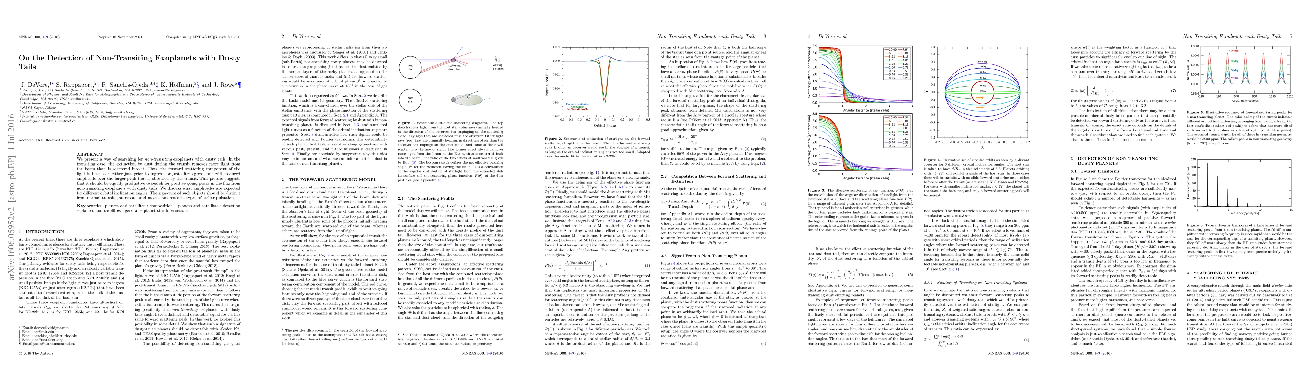 We present a way of searching for non-transiting exoplanets with dusty tails. In the transiting case, the extinction by dust during the transit removes more light from the beam than is scattered into it. Thus, the forward scattering component of the light is best seen either just prior to ingress, or just after egress, but with reduced amplitude over the larger peak that is obscured by the transit. This picture suggests that it should be equally productive to search for positive-going peaks in the flux from non-transiting exoplanets with dusty tails. We discuss what amplitudes are expected for different orbital inclination angles. The signature of such objects should be distinct from normal transits, starspots, and most - but not all - types of stellar pulsations.