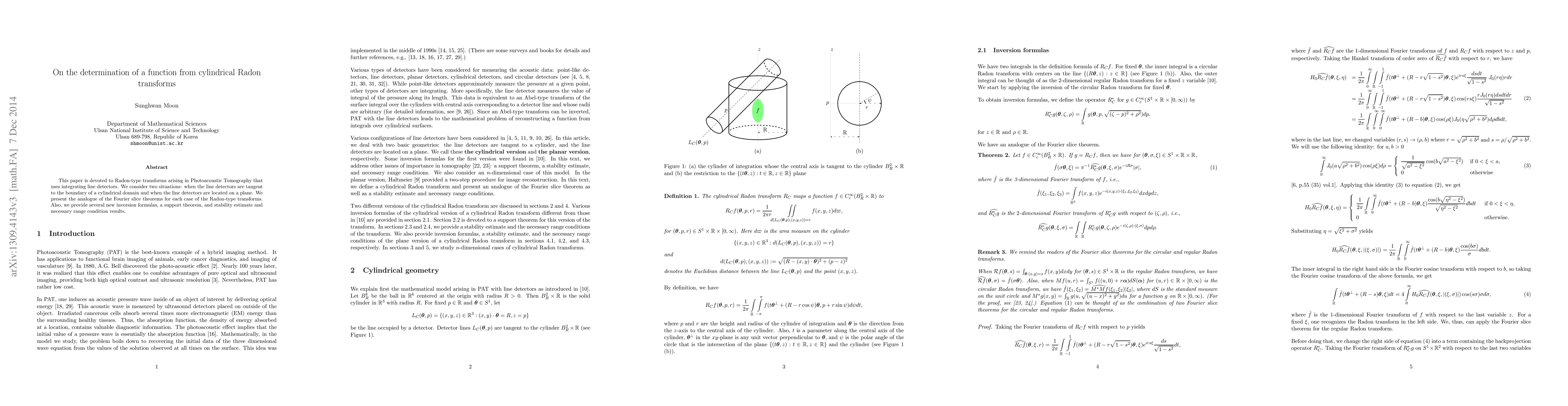 This paper is devoted to a Radon-type transform arising in Photoacoustic Tomography that uses integrating line detectors. We consider two situations: when the line detectors are tangent to the boundary of a cylindrical domain and when the line detectors are located on a plane. We present the analogue of the Fourier slice theorems for each case of the Radon-type transforms. Also, we provide several new inversion formulas, a support theorem, and stability estimate and necessary range condition results.