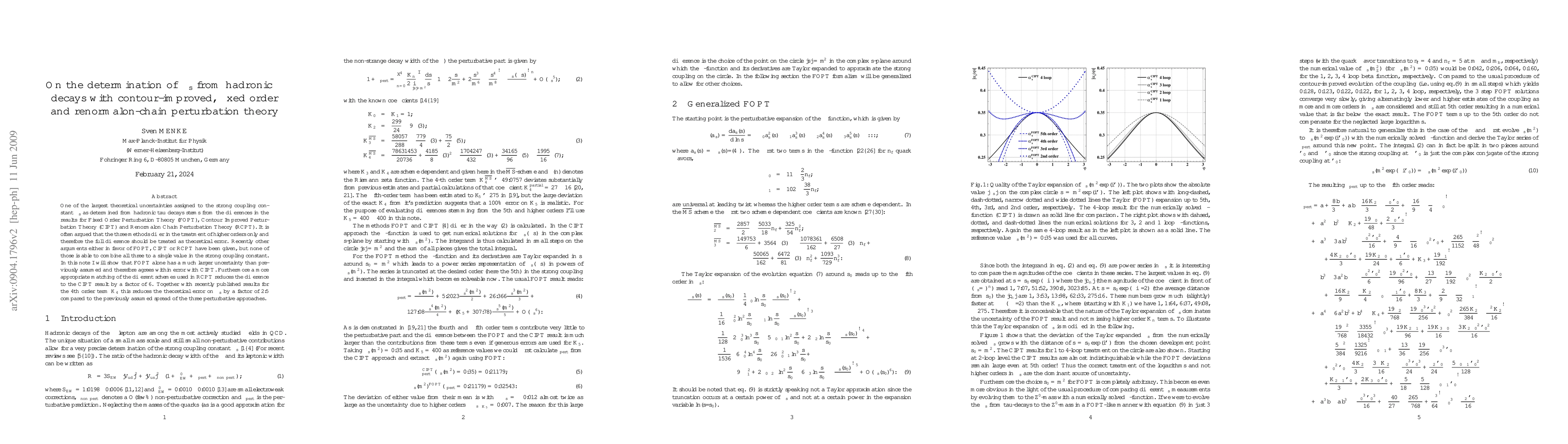 This paper addresses the determination of the strong coupling constant alpha_s from hadronic tau decays, showing that Fixed Order Perturbation Theory (FOPT) has a larger uncertainty than previously thought, while Contour Improved Perturbation Theory (CIPT) and Renormalon Chain Perturbation Theory (RCPT) results are more closely aligned. The theoretical error on alpha_s is reduced by a factor of 2.5.