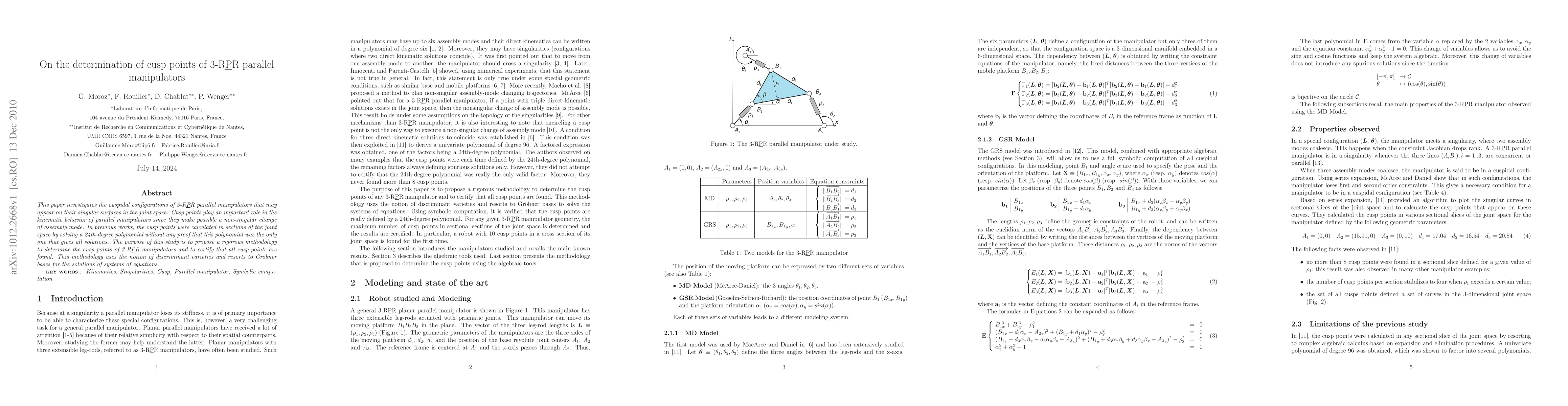 This paper proposes a rigorous methodology to determine cusp points in 3-RPR parallel manipulators using discriminant varieties and Gröbner bases, ensuring all cusp points are identified, unlike previous methods relying on a 24th-degree polynomial without proof of completeness.