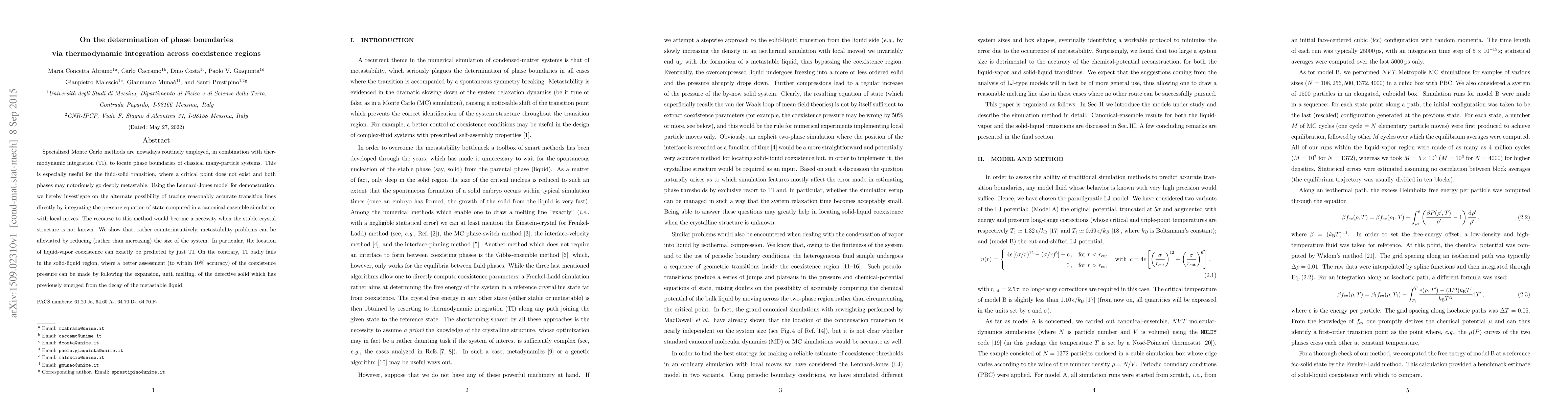 This paper explores the use of thermodynamic integration (TI) combined with Monte Carlo methods to determine phase boundaries, particularly for fluid-solid transitions where traditional methods fail. It demonstrates that TI can accurately predict liquid-vapor coexistence but struggles in solid-liquid regions, suggesting an alternative approach involving the expansion of defective solids.