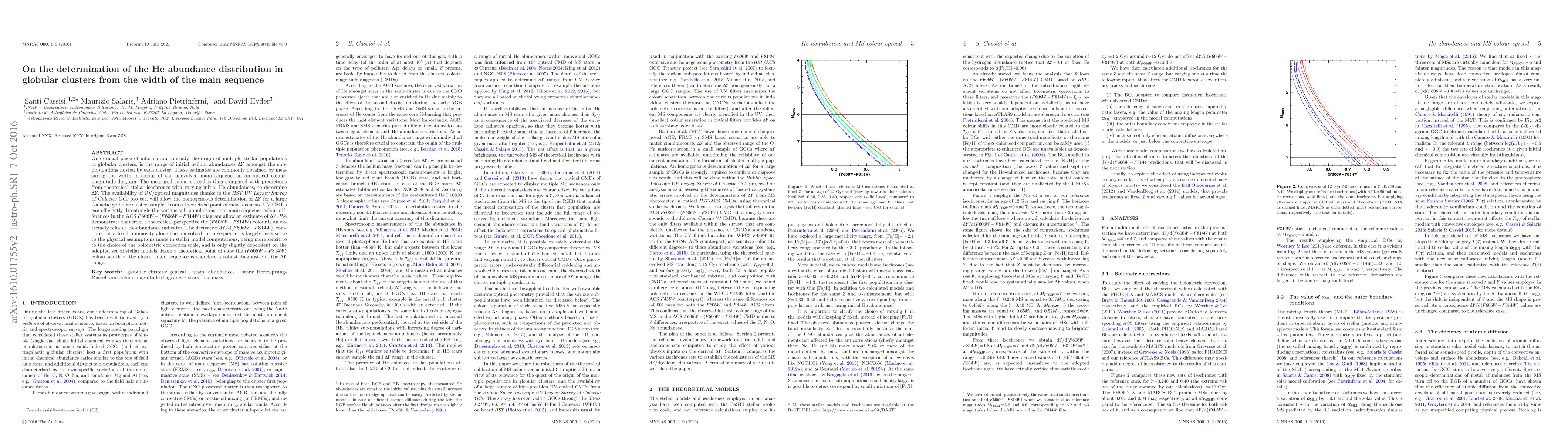 One crucial piece of information to study the origin of multiple stellar populations in globular clusters, is the range of initial helium abundances $\Delta{Y}$ amongst the sub-populations hosted by each cluster. These estimates are commonly obtained by measuring the width in colour of the unevolved main sequence in an optical colour-magnitude-diagram. The measured colour spread is then compared with predictions from theoretical stellar isochrones with varying initial He abundances, to determine $\Delta{Y}$. The availability of UV/optical magnitudes thanks to the {\sl HST UV Legacy Survey of Galactic GCs} project, will allow the homogeneous determination of $\Delta{Y}$ for a large Galactic globular cluster sample. From a theoretical point of view, accurate UV CMDs can efficiently disentangle the various sub-populations, and main sequence colour differences in the ACS $F606W-(F606W-F814W)$ diagram allow an estimate of $\Delta{Y}$. We demonstrate that from a theoretical perspective the ($F606W-F814W$) colour is an extremely reliable He-abundance indicator. The derivative d$Y$/d($F606W-F814W$), computed at a fixed luminosity along the unevolved main sequence, is largely insensitive to the physical assumptions made in stellar model computations, being more sensitive to the choice of the bolometric correction scale, and is only slightly dependent on the adopted set of stellar models. From a theoretical point of view the ($F606W-F814W$) colour width of the cluster main sequence is therefore a robust diagnostic of the $\Delta{Y}$ range.