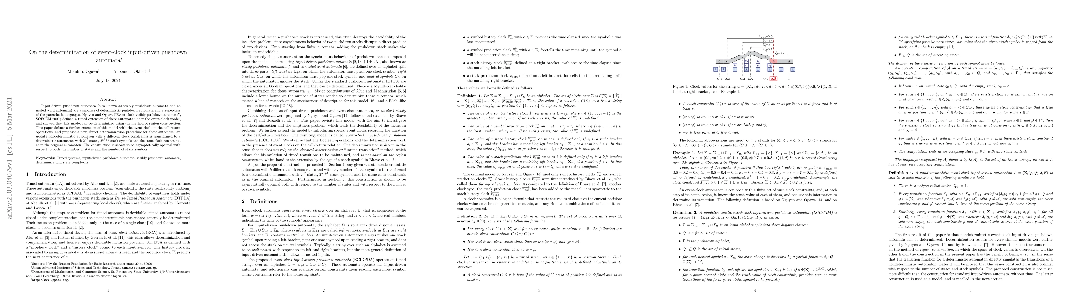 This paper extends event-clock input-driven pushdown automata by incorporating event clocks on call-return operations and proposes a new direct determinization method transforming an $n$-state nondeterministic automaton into a deterministic one with $2^{n^2}$ states and $2^{n^2+k}$ stack symbols, demonstrating asymptotic optimality.